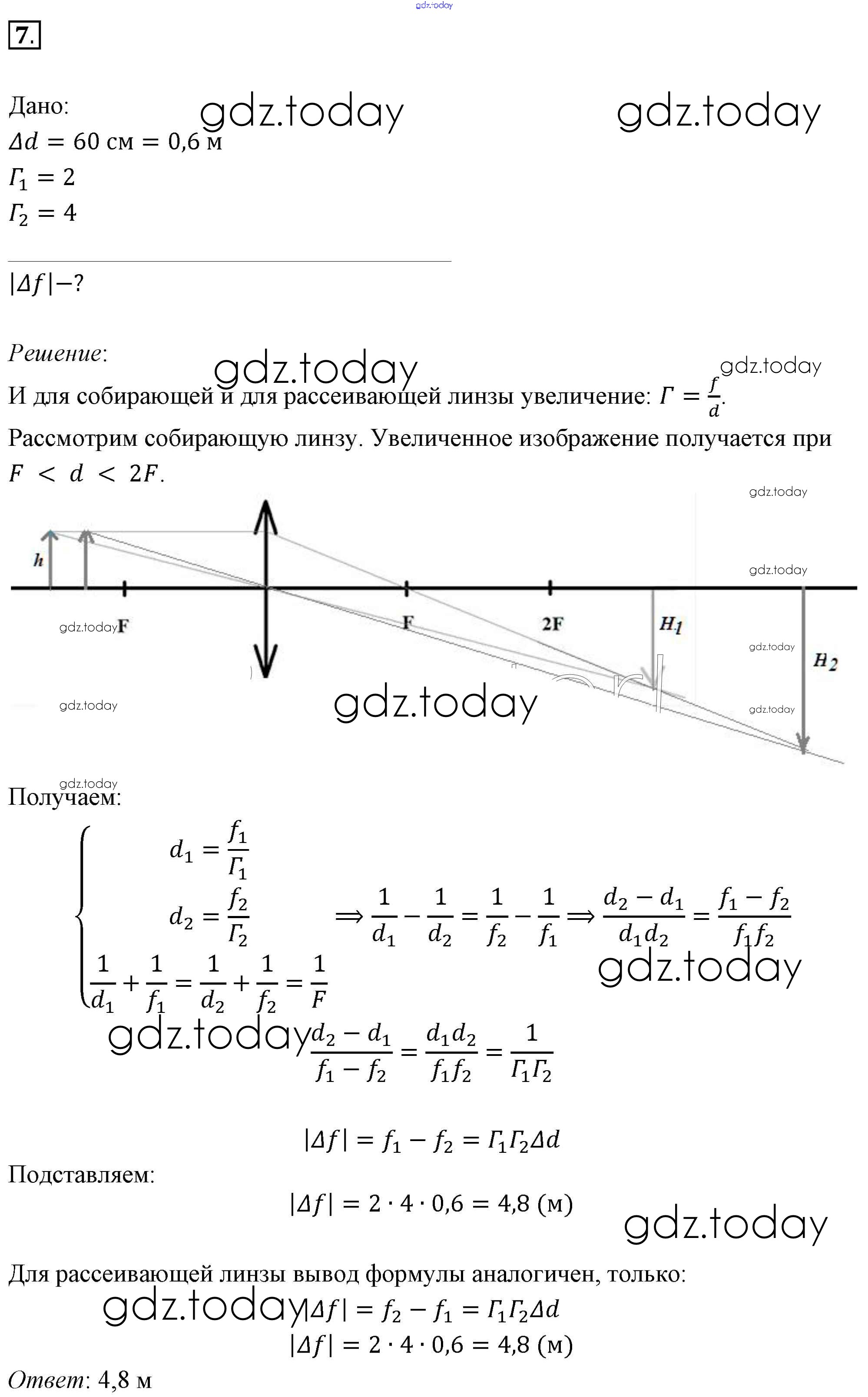 На страницах сайта gdz.today вы найдете учебный и вспомогательный материал, направленный на улучшения знаний школьной программы. ГДЗ - онлайн мир знаний Задачи для самостоятельного решения Решение к §52. Примеры решения задач по теме «Линзы» 7 Учебнику по Физике для 11 класса Мякишев, Буховцев Базовый уровень Просвещение 2018