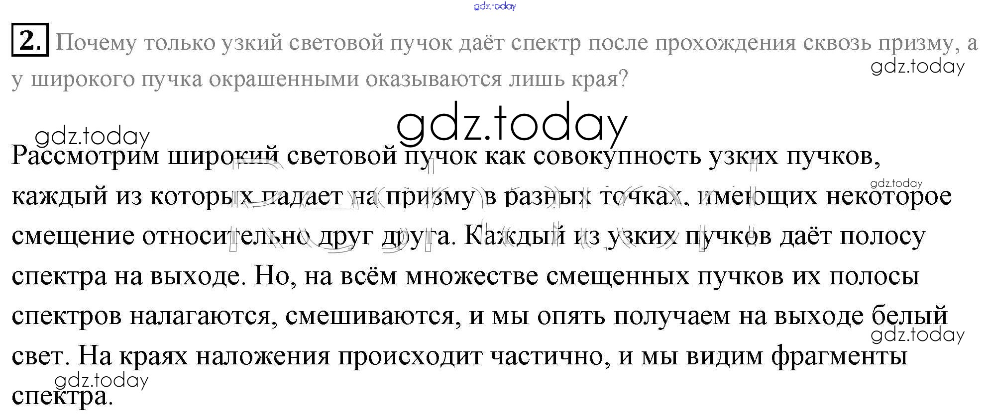 На страницах сайта gdz.today вы найдете учебный и вспомогательный материал, направленный на улучшения знаний школьной программы. ГДЗ - онлайн мир знаний Вопросы к параграфу Решение к §53. Дисперсия света 2 Учебнику по Физике для 11 класса Мякишев, Буховцев Базовый уровень Просвещение 2018