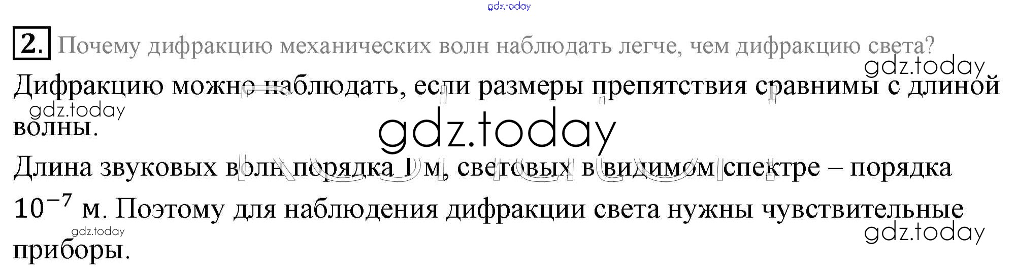 Ответы к Вопросы к параграфу Решение к §56. Дифракция света 2 Учебнику по Физике для 11 класса Мякишев, Буховцев Базовый уровень Просвещение 2018