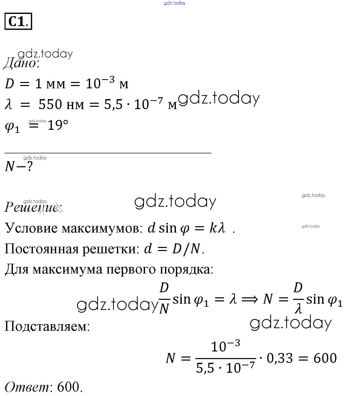 На страницах сайта gdz.today вы найдете учебный и вспомогательный материал, направленный на улучшения знаний школьной программы. ГДЗ - онлайн мир знаний Задания ЕГЭ Решение к §59. Примеры решения задач по теме «Интерференция и дифракция света» 1 Учебнику по Физике для 11 класса Мякишев, Буховцев Базовый уровень Просвещение 2018