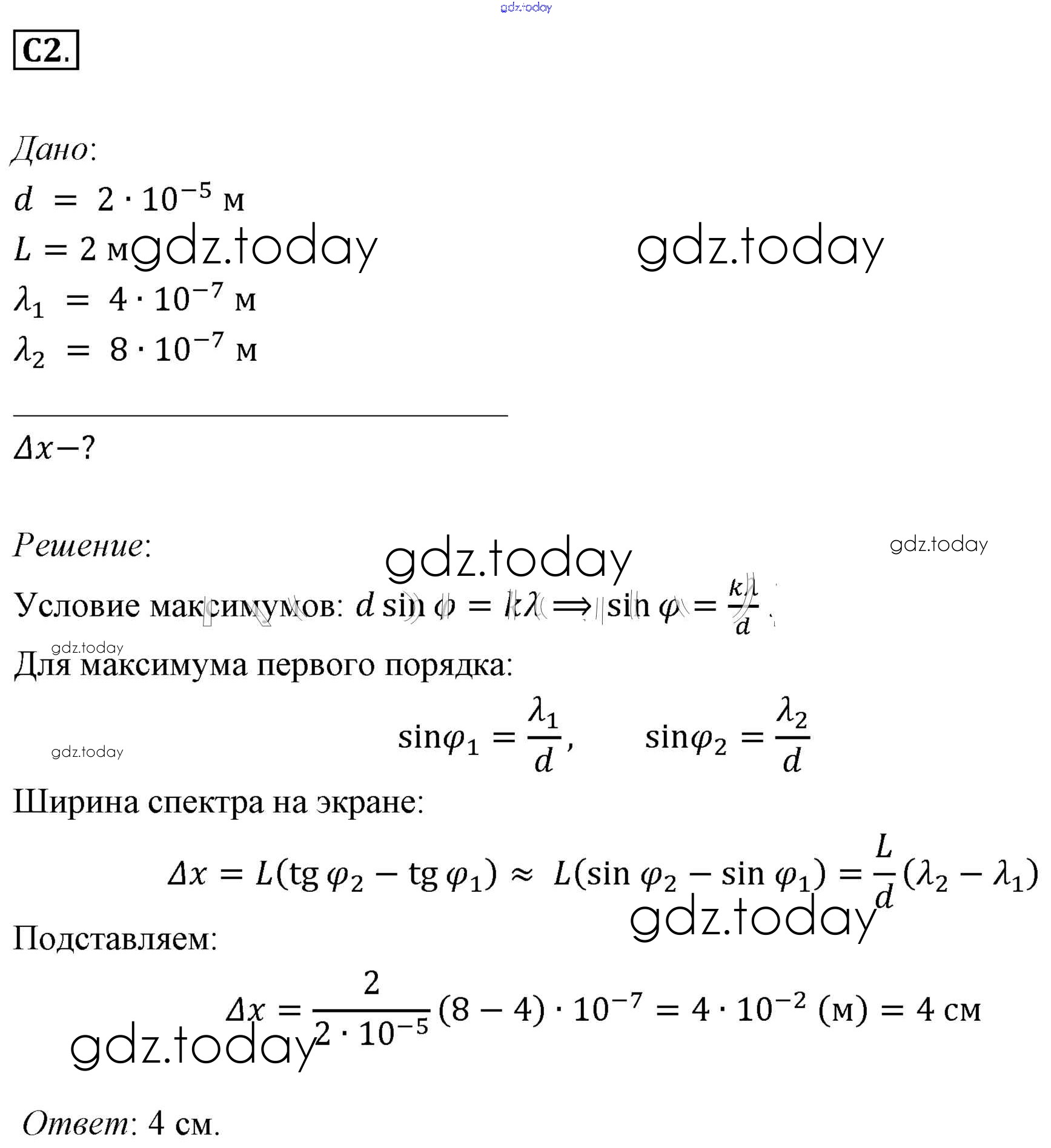 На страницах сайта gdz.today вы найдете учебный и вспомогательный материал, направленный на улучшения знаний школьной программы. ГДЗ - онлайн мир знаний Задания ЕГЭ Решение к §59. Примеры решения задач по теме «Интерференция и дифракция света» 2 Учебнику по Физике для 11 класса Мякишев, Буховцев Базовый уровень Просвещение 2018
