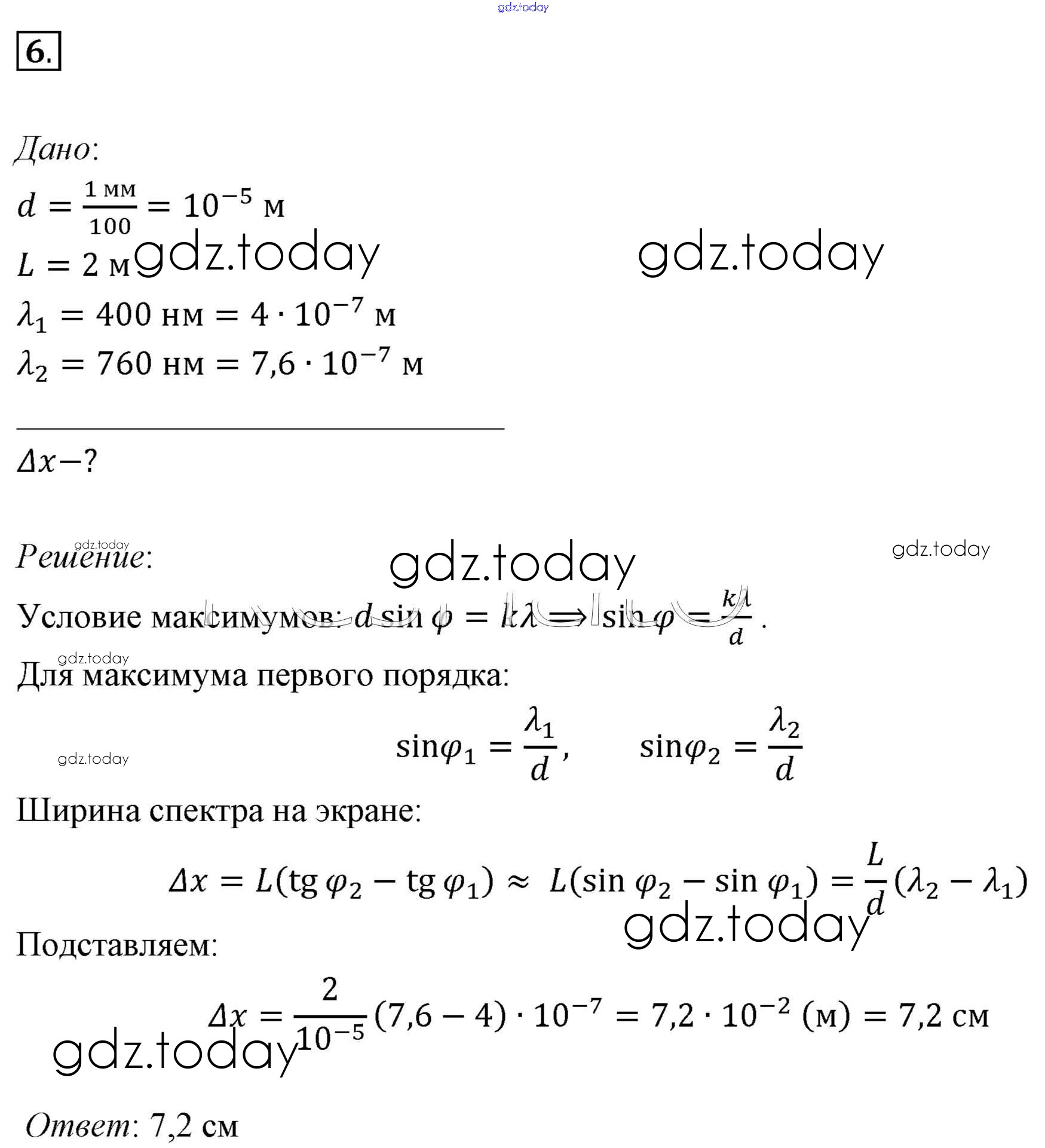На страницах сайта gdz.today вы найдете учебный и вспомогательный материал, направленный на улучшения знаний школьной программы. ГДЗ - онлайн мир знаний Задачи для самостоятельного решения Решение к §59. Примеры решения задач по теме «Интерференция и дифракция света» 6 Учебнику по Физике для 11 класса Мякишев, Буховцев Базовый уровень Просвещение 2018