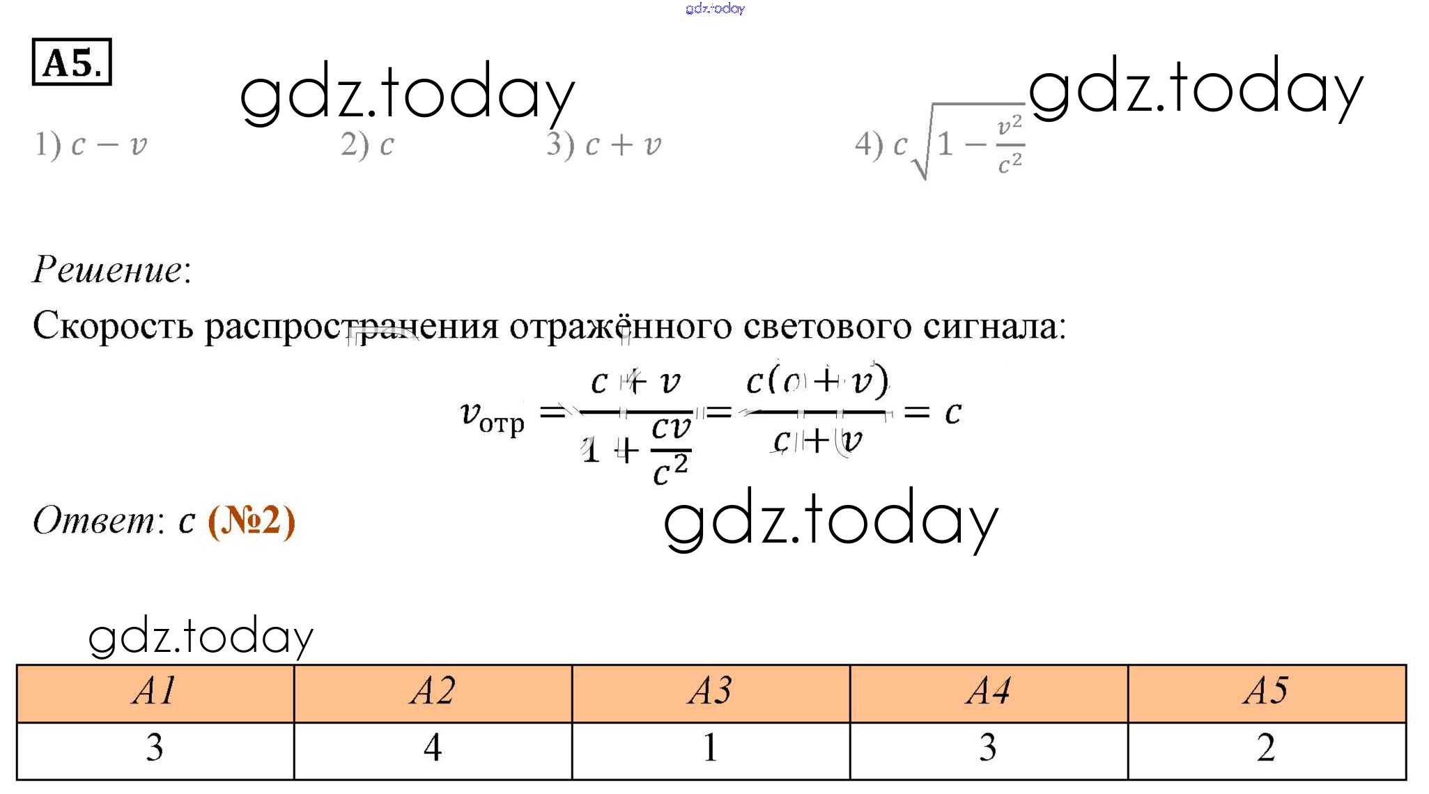 Ответы к Задания ЕГЭ Решение к §63. Основные следствия из постулатов теории относительности 5 Учебнику по Физике для 11 класса Мякишев, Буховцев Базовый уровень Просвещение 2018