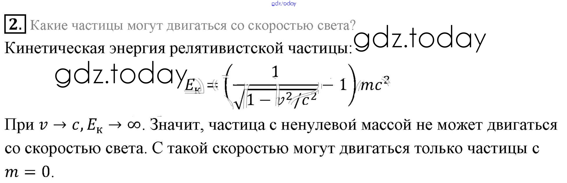Ответы к Вопросы к параграфу Решение к §64. Элементы релятивистской динамики 2 Учебнику по Физике для 11 класса Мякишев, Буховцев Базовый уровень Просвещение 2018