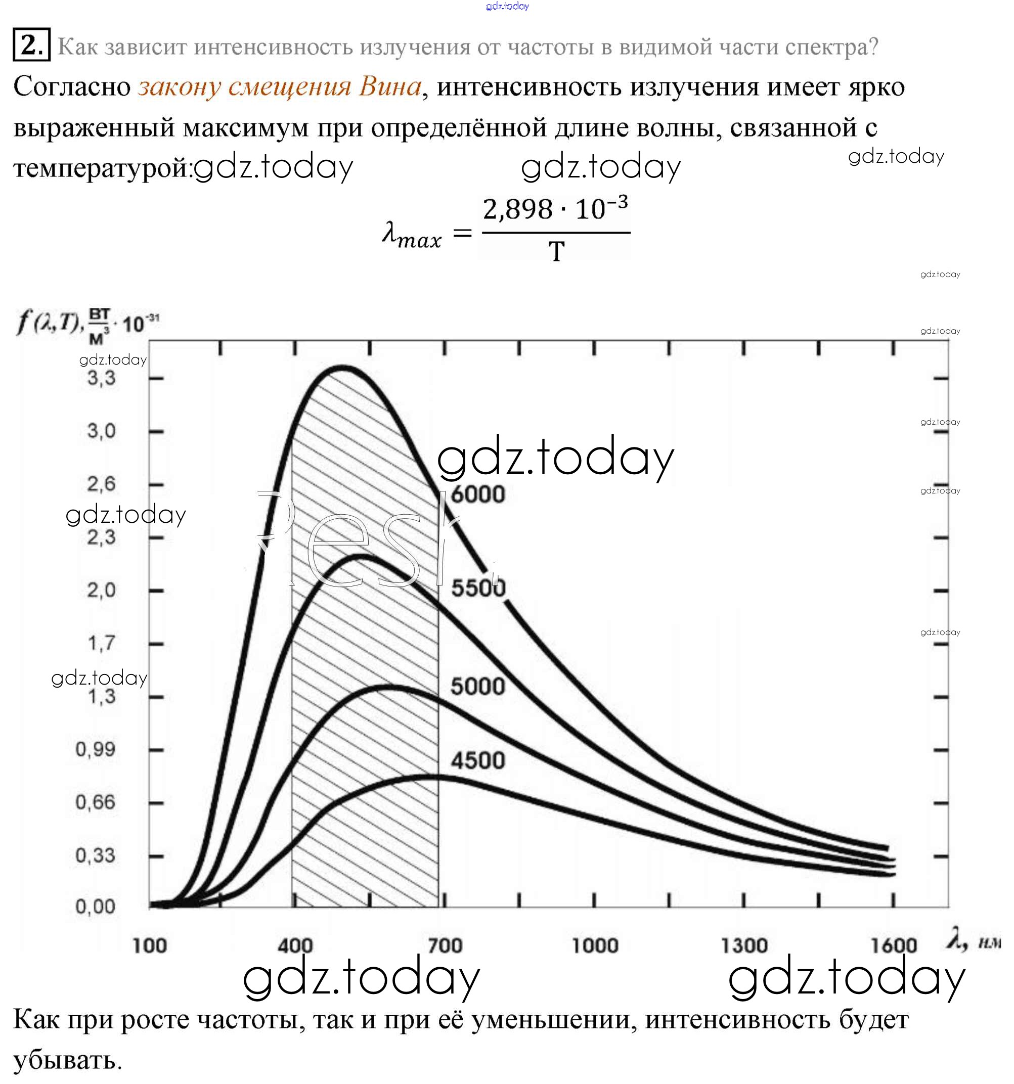 Ответы к Вопросы к параграфу Решение к §67. Спектры и спектральный анализ 2 Учебнику по Физике для 11 класса Мякишев, Буховцев Базовый уровень Просвещение 2018