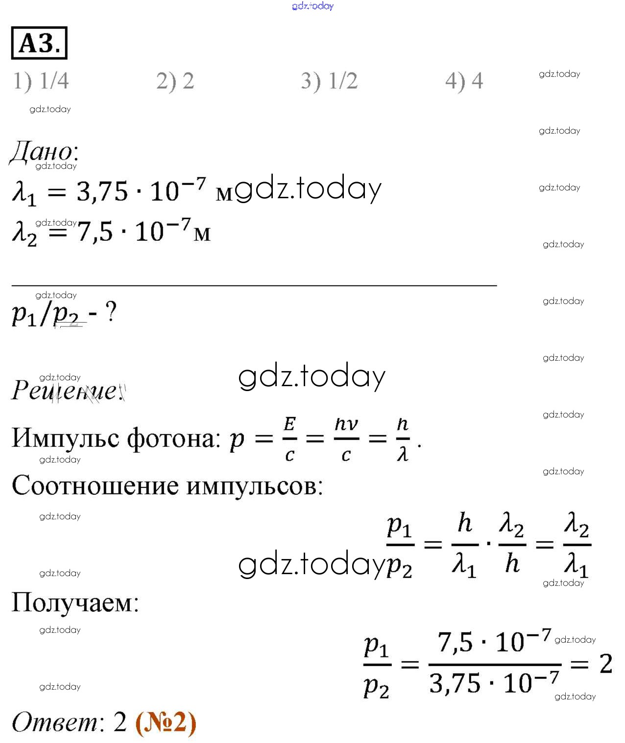 Ответы к Задания ЕГЭ Решение к §71. Фотоны. Корпускулярно-волновой дуализм 3 Учебнику по Физике для 11 класса Мякишев, Буховцев Базовый уровень Просвещение 2018