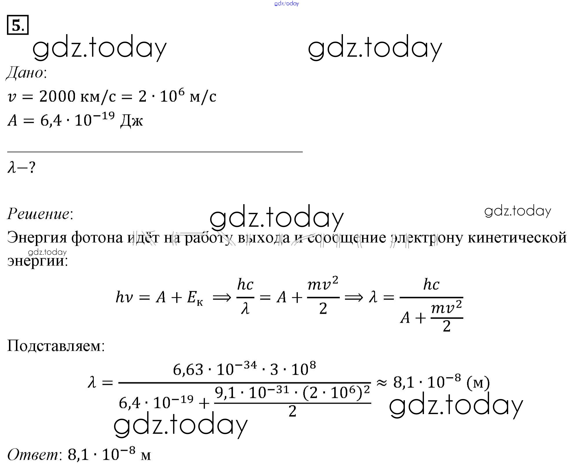 На страницах сайта gdz.today вы найдете учебный и вспомогательный материал, направленный на улучшения знаний школьной программы. ГДЗ - онлайн мир знаний Задачи для самостоятельного решения Решение к §73. Примеры решения задач по теме «световые кванты. Фотоэффект» 5 Учебнику по Физике для 11 класса Мякишев, Буховцев Базовый уровень Просвещение 2018