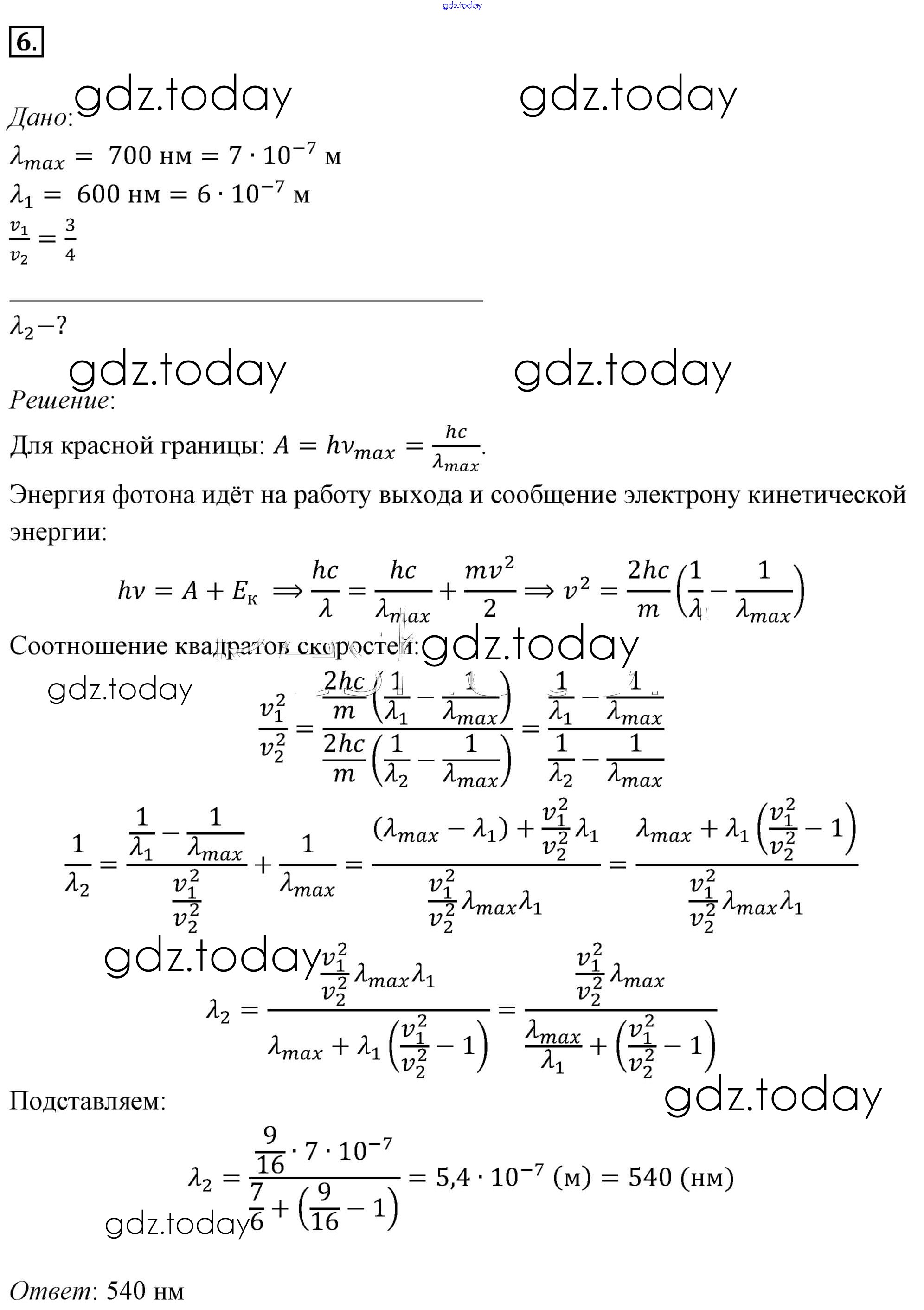 Ответы к Задачи для самостоятельного решения Решение к §73. Примеры решения задач по теме «световые кванты. Фотоэффект» 6 Учебнику по Физике для 11 класса Мякишев, Буховцев Базовый уровень Просвещение 2018