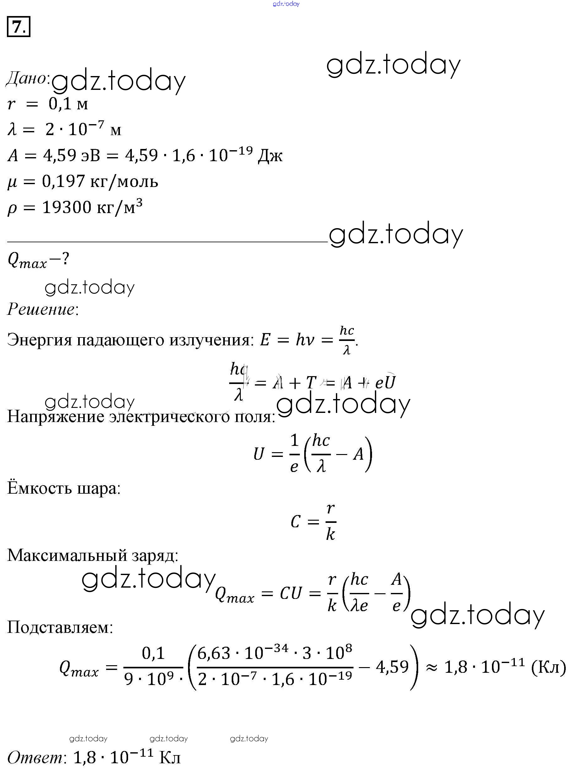 Ответы к Задачи для самостоятельного решения Решение к §73. Примеры решения задач по теме «световые кванты. Фотоэффект» 7 Учебнику по Физике для 11 класса Мякишев, Буховцев Базовый уровень Просвещение 2018