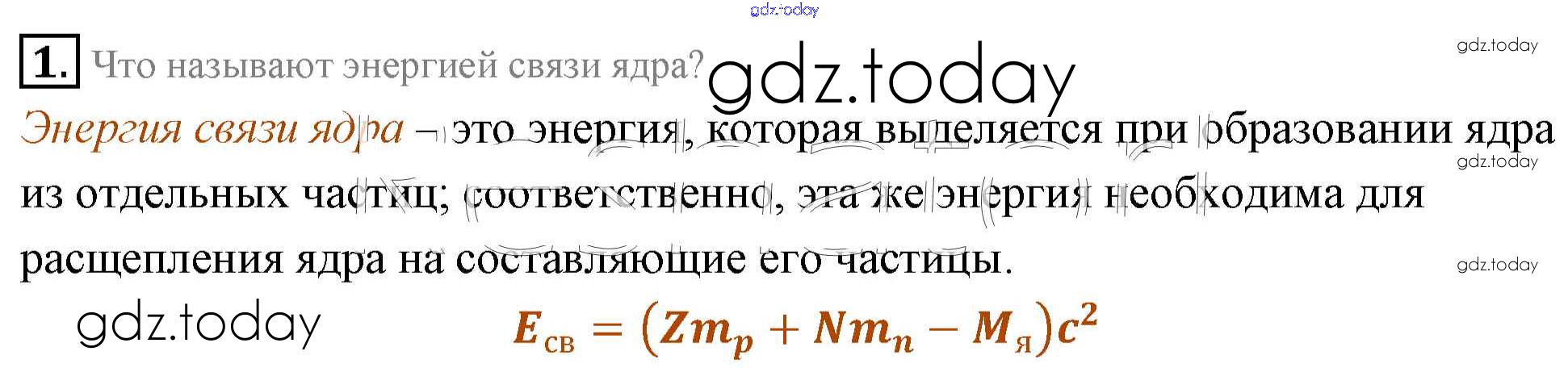 Ответы к Вопросы к параграфу Решение к §80. Энергия связи атомных ядер 1 Учебнику по Физике для 11 класса Мякишев, Буховцев Базовый уровень Просвещение 2018