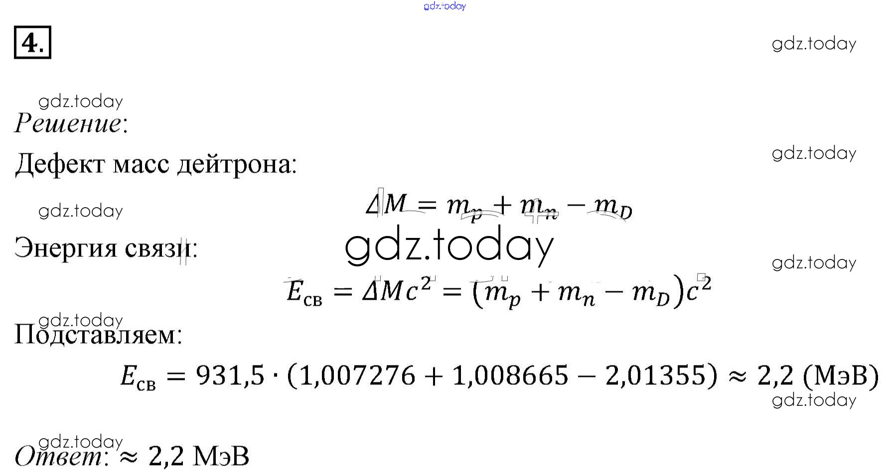 Ответы к Задачи для самостоятельного решения Решение к §81. Примеры решения задач по теме «Энергия связи атомных ядер» 4 Учебнику по Физике для 11 класса Мякишев, Буховцев Базовый уровень Просвещение 2018
