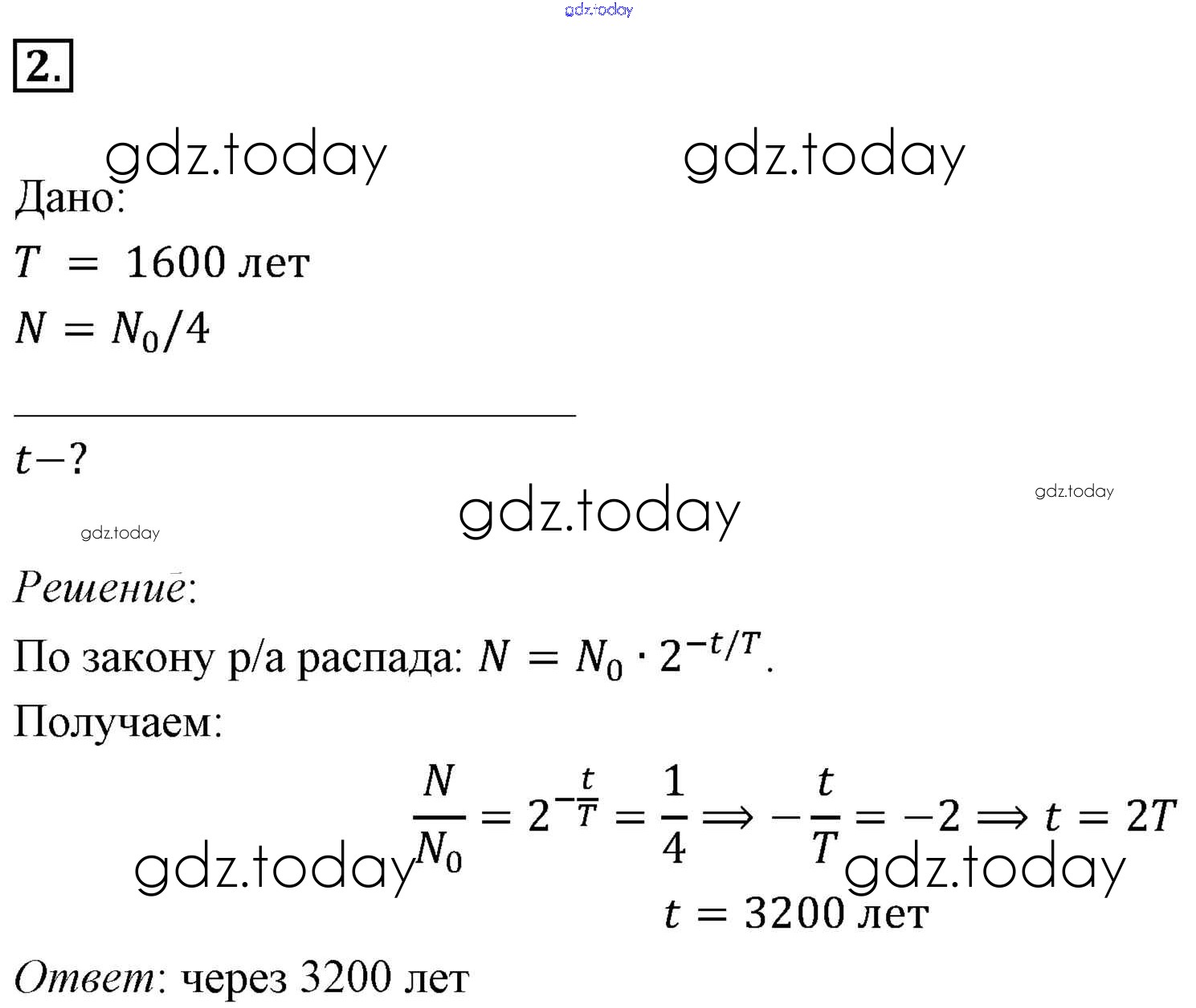 На страницах сайта gdz.today вы найдете учебный и вспомогательный материал, направленный на улучшения знаний школьной программы. ГДЗ - онлайн мир знаний Задачи для самостоятельного решения Решение к §85. Примеры решения задач по теме «Закон радиоактивного распада» 2 Учебнику по Физике для 11 класса Мякишев, Буховцев Базовый уровень Просвещение 2018