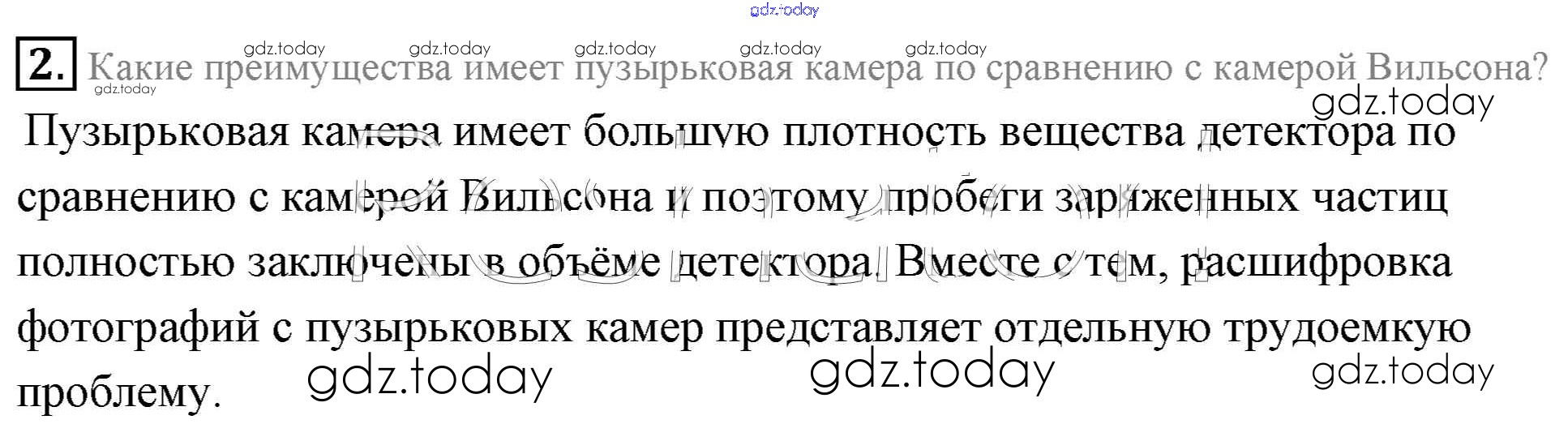 На страницах сайта gdz.today вы найдете учебный и вспомогательный материал, направленный на улучшения знаний школьной программы. ГДЗ - онлайн мир знаний Вопросы к параграфу Решение к §86. Методы наблюдения и регистрации элементарных частиц 2 Учебнику по Физике для 11 класса Мякишев, Буховцев Базовый уровень Просвещение 2018