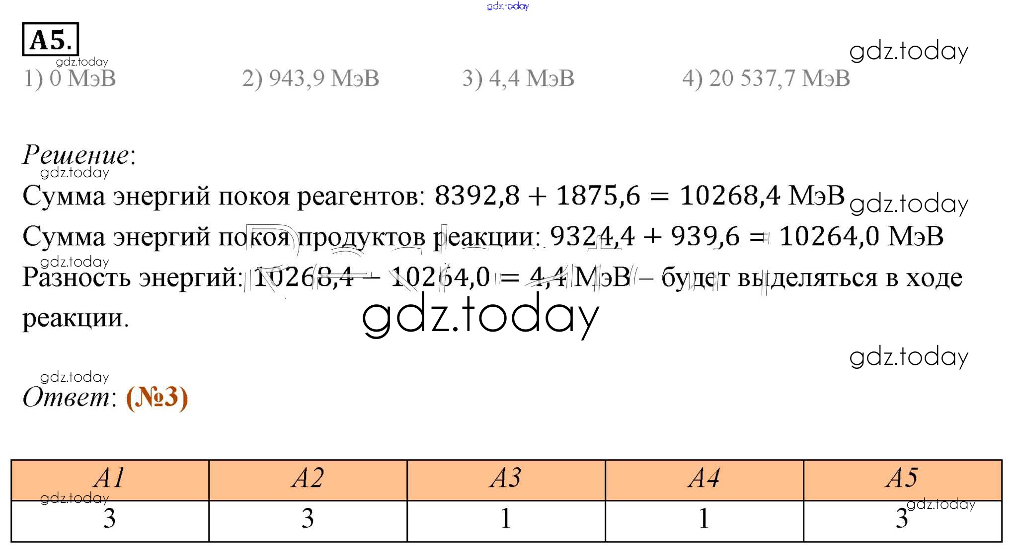 Ответы к Задания ЕГЭ Решение к §87. Искусственная радиоактивность. Ядерные реакции 5 Учебнику по Физике для 11 класса Мякишев, Буховцев Базовый уровень Просвещение 2018