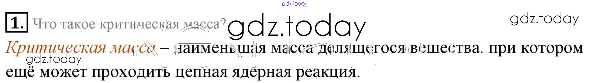 Ответы к Вопросы к параграфу Решение к §89. Ядерный реактор 1 Учебнику по Физике для 11 класса Мякишев, Буховцев Базовый уровень Просвещение 2018