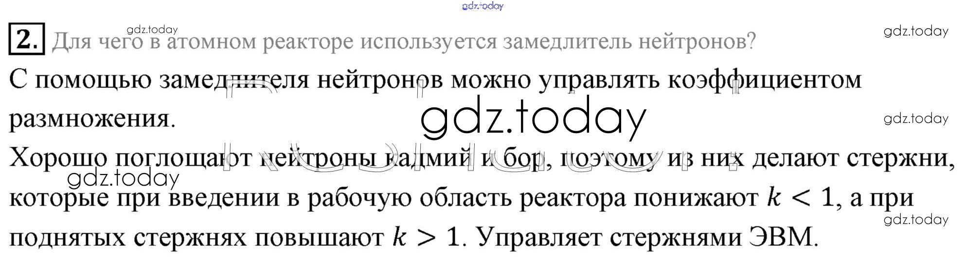 Ответы к Вопросы к параграфу Решение к §89. Ядерный реактор 2 Учебнику по Физике для 11 класса Мякишев, Буховцев Базовый уровень Просвещение 2018