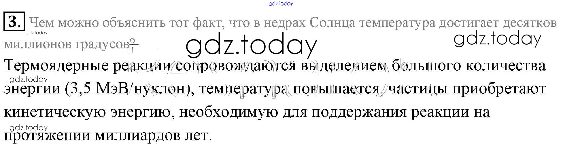 Ответы к Вопросы к параграфу Решение к §90. Термоядерные реакции 3 Учебнику по Физике для 11 класса Мякишев, Буховцев Базовый уровень Просвещение 2018
