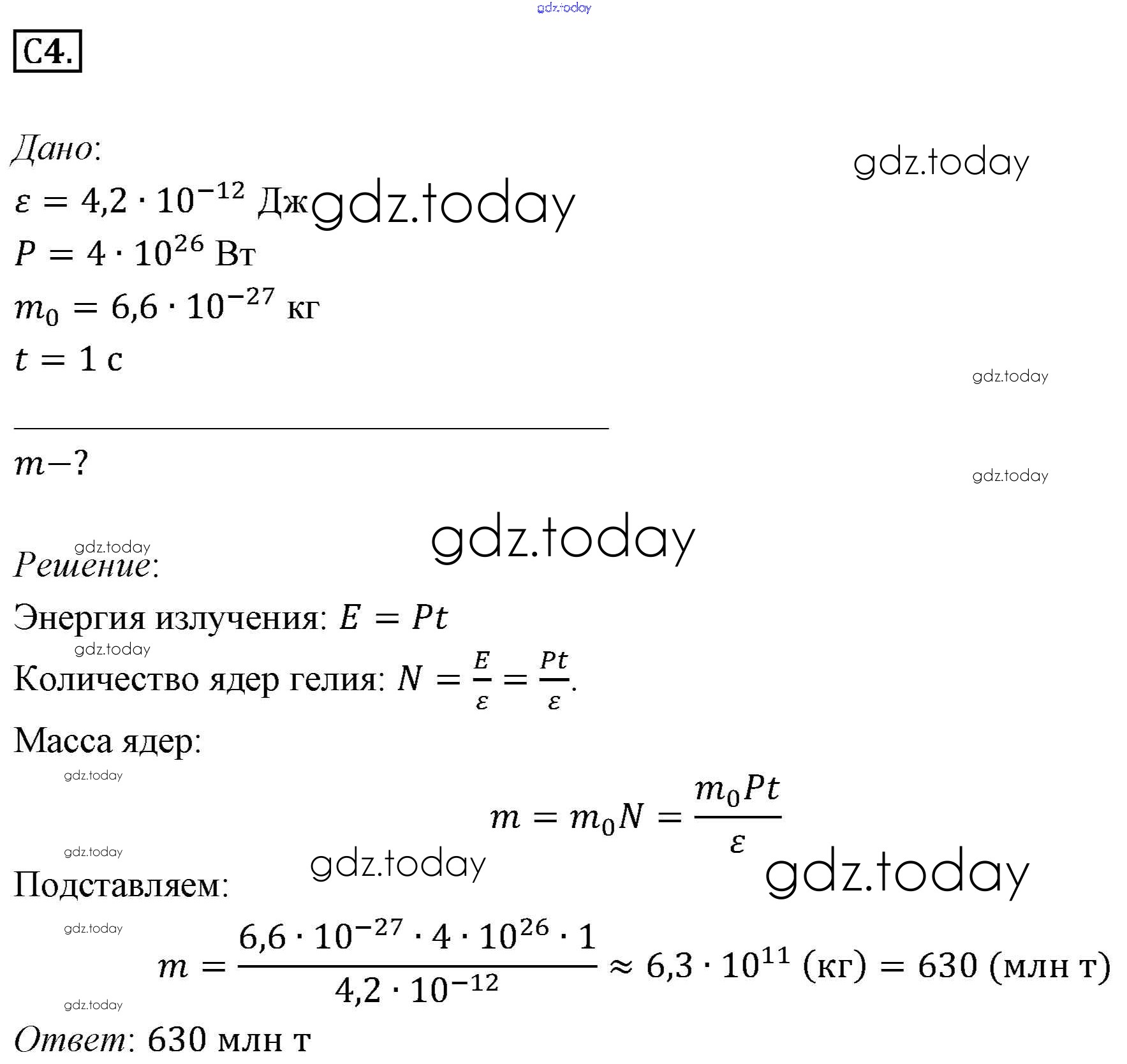 Ответы к Задания ЕГЭ Решение к §91. Примеры решения задач по теме «Ядерные реакции» 4 Учебнику по Физике для 11 класса Мякишев, Буховцев Базовый уровень Просвещение 2018