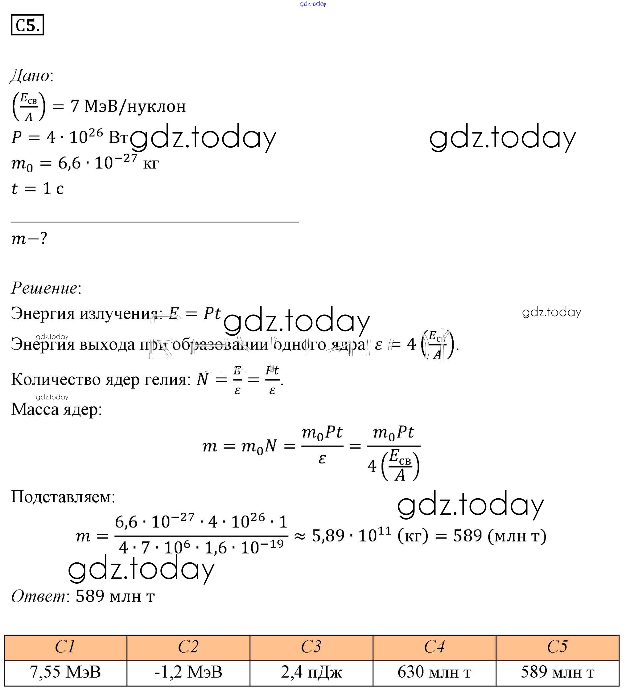 Ответы к Задания ЕГЭ Решение к §91. Примеры решения задач по теме «Ядерные реакции» 5 Учебнику по Физике для 11 класса Мякишев, Буховцев Базовый уровень Просвещение 2018