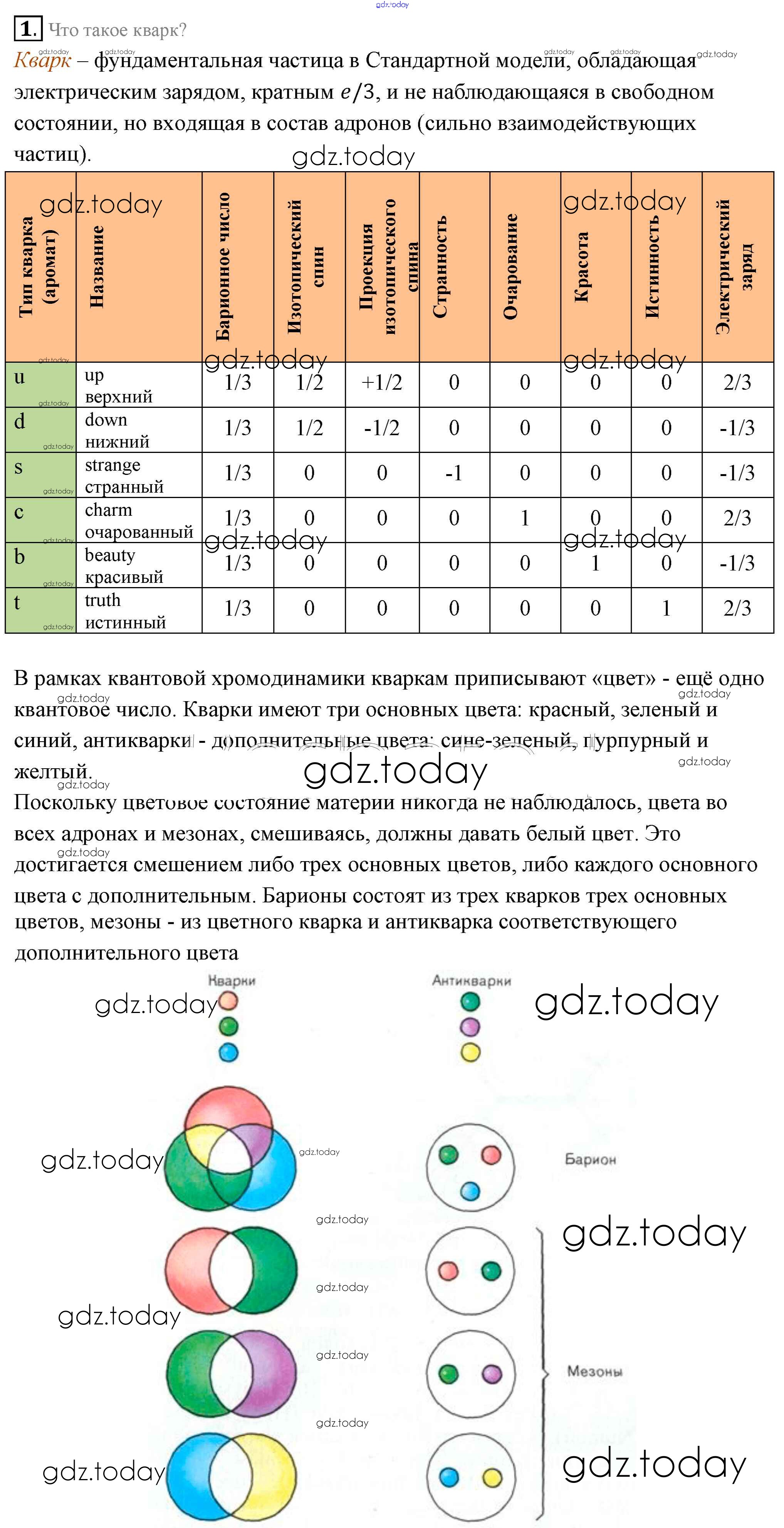 На страницах сайта gdz.today вы найдете учебный и вспомогательный материал, направленный на улучшения знаний школьной программы. ГДЗ - онлайн мир знаний Вопросы к параграфу Решение к §98. Адроны. Кварки 1 Учебнику по Физике для 11 класса Мякишев, Буховцев Базовый уровень Просвещение 2018
