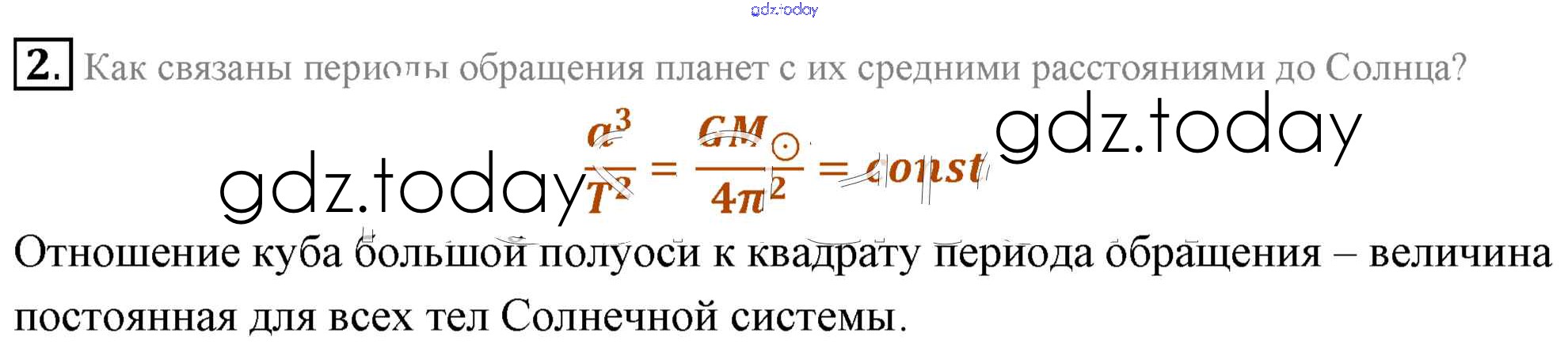 На страницах сайта gdz.today вы найдете учебный и вспомогательный материал, направленный на улучшения знаний школьной программы. ГДЗ - онлайн мир знаний Вопросы к параграфу Решение к §99. Видимые движения небесных тел. законы Кеплера 2 Учебнику по Физике для 11 класса Мякишев, Буховцев Базовый уровень Просвещение 2018