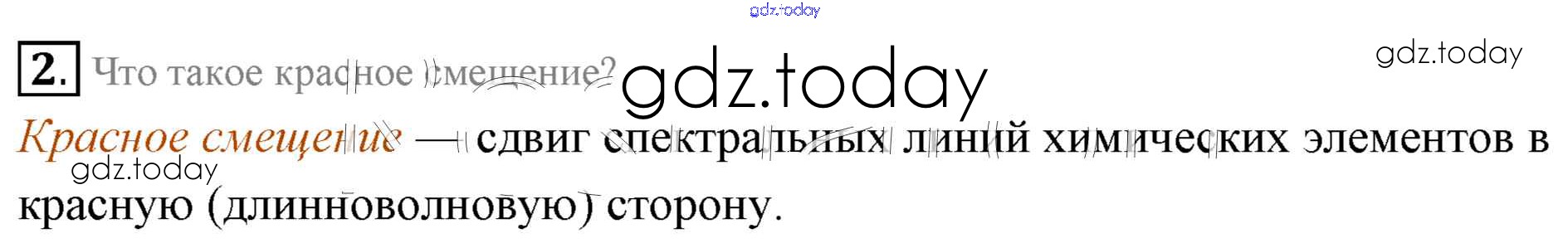 На страницах сайта gdz.today вы найдете учебный и вспомогательный материал, направленный на улучшения знаний школьной программы. ГДЗ - онлайн мир знаний Вопросы к параграфу Решение к §107. Галактики 2 Учебнику по Физике для 11 класса Мякишев, Буховцев Базовый уровень Просвещение 2018