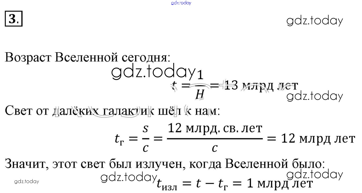 Ответы к Вопросы к параграфу Решение к §108. Строение и эволюция вселенной 3 Учебнику по Физике для 11 класса Мякишев, Буховцев Базовый уровень Просвещение 2018