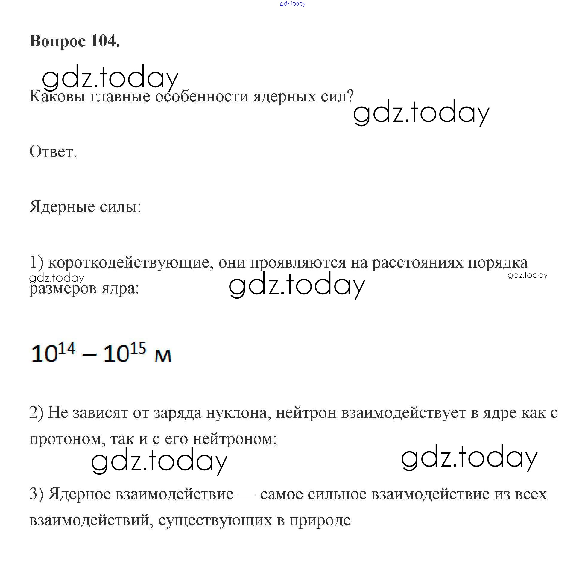 На страницах сайта gdz.today вы найдете учебный и вспомогательный материал, направленный на улучшения знаний школьной программы. ГДЗ - онлайн мир знаний Решение к вопросам 104 Учебнику по Физике для 11 класса Мякишев, Буховцев Базовый и углубленный уровень Просвещение 2019