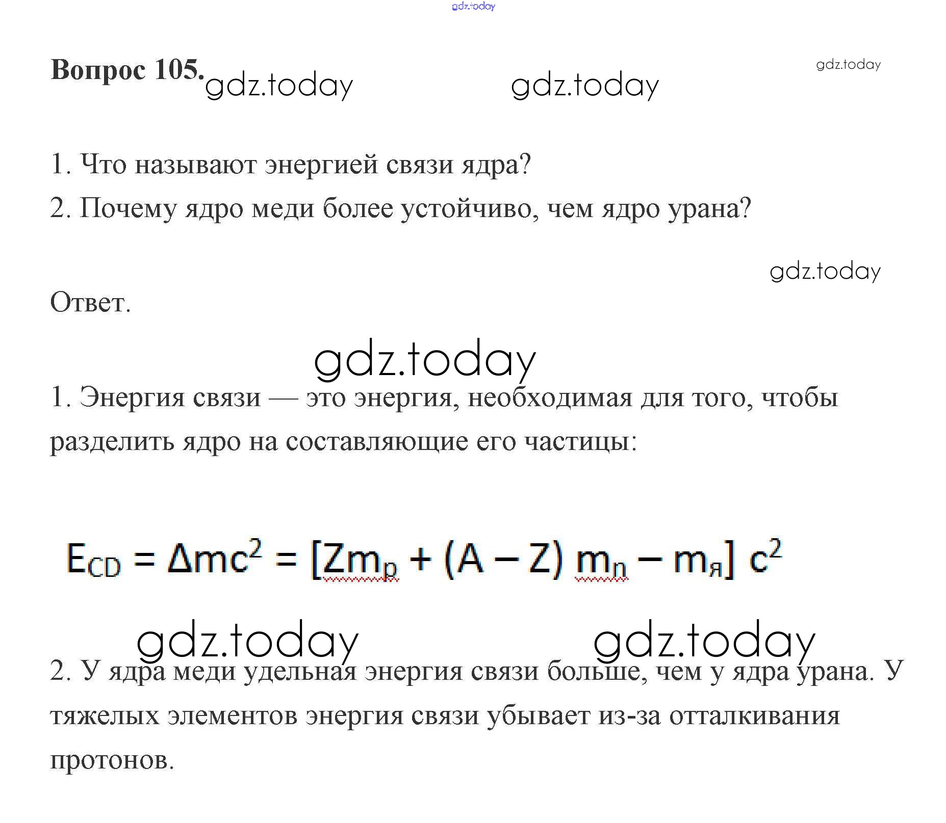 На страницах сайта gdz.today вы найдете учебный и вспомогательный материал, направленный на улучшения знаний школьной программы. ГДЗ - онлайн мир знаний Решение к вопросам 105 Учебнику по Физике для 11 класса Мякишев, Буховцев Базовый и углубленный уровень Просвещение 2019