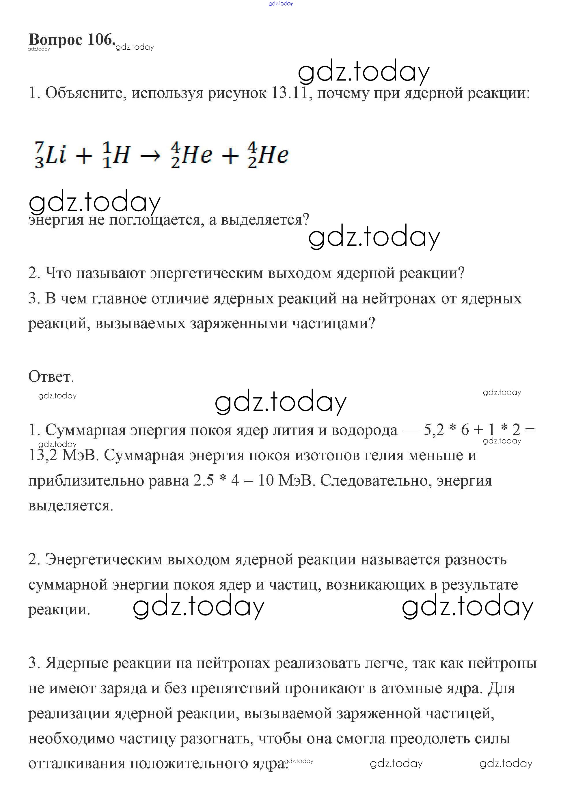 Ответы к Решение к вопросам 106 Учебнику по Физике для 11 класса Мякишев, Буховцев Базовый и углубленный уровень Просвещение 2019
