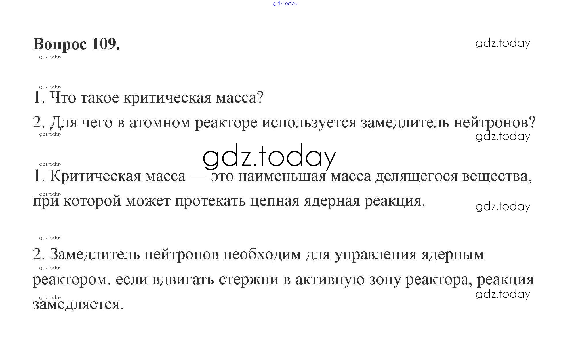 На страницах сайта gdz.today вы найдете учебный и вспомогательный материал, направленный на улучшения знаний школьной программы. ГДЗ - онлайн мир знаний Решение к вопросам 109 Учебнику по Физике для 11 класса Мякишев, Буховцев Базовый и углубленный уровень Просвещение 2019