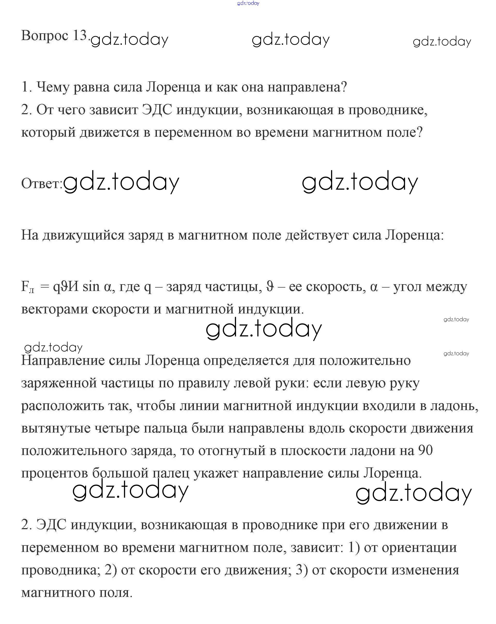 На страницах сайта gdz.today вы найдете учебный и вспомогательный материал, направленный на улучшения знаний школьной программы. ГДЗ - онлайн мир знаний Решение к вопросам 13 Учебнику по Физике для 11 класса Мякишев, Буховцев Базовый и углубленный уровень Просвещение 2019