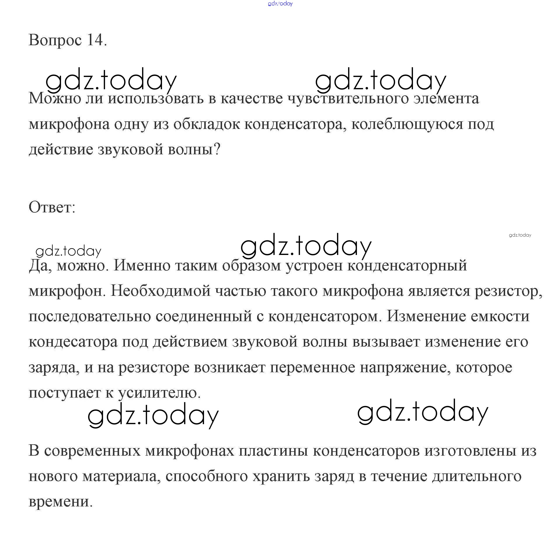 На страницах сайта gdz.today вы найдете учебный и вспомогательный материал, направленный на улучшения знаний школьной программы. ГДЗ - онлайн мир знаний Решение к вопросам 14 Учебнику по Физике для 11 класса Мякишев, Буховцев Базовый и углубленный уровень Просвещение 2019