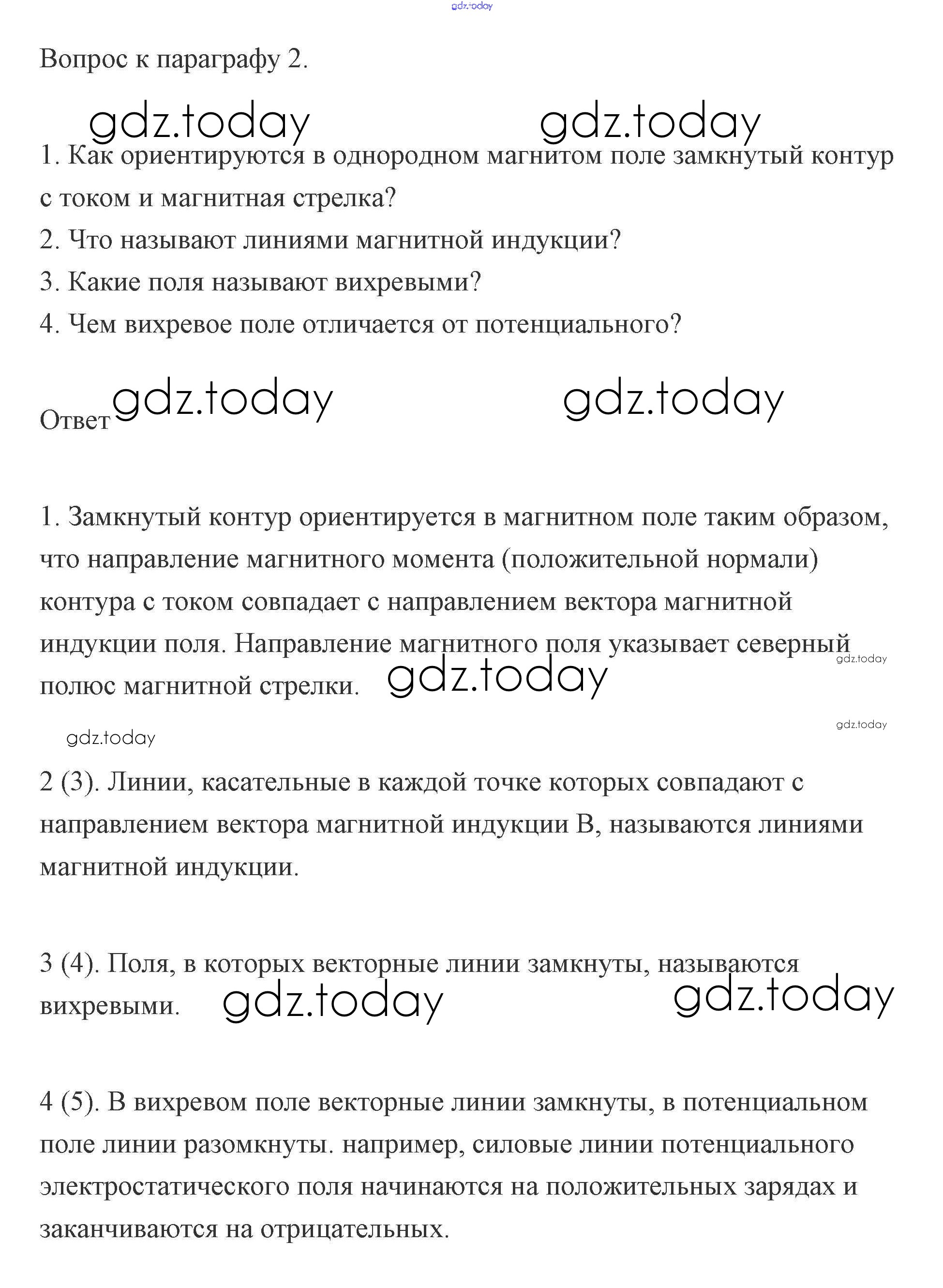 На страницах сайта gdz.today вы найдете учебный и вспомогательный материал, направленный на улучшения знаний школьной программы. ГДЗ - онлайн мир знаний Решение к вопросам 2 Учебнику по Физике для 11 класса Мякишев, Буховцев Базовый и углубленный уровень Просвещение 2019