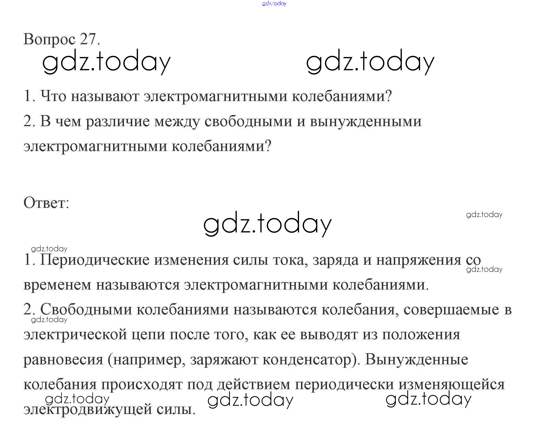 На страницах сайта gdz.today вы найдете учебный и вспомогательный материал, направленный на улучшения знаний школьной программы. ГДЗ - онлайн мир знаний Решение к вопросам 27 Учебнику по Физике для 11 класса Мякишев, Буховцев Базовый и углубленный уровень Просвещение 2019