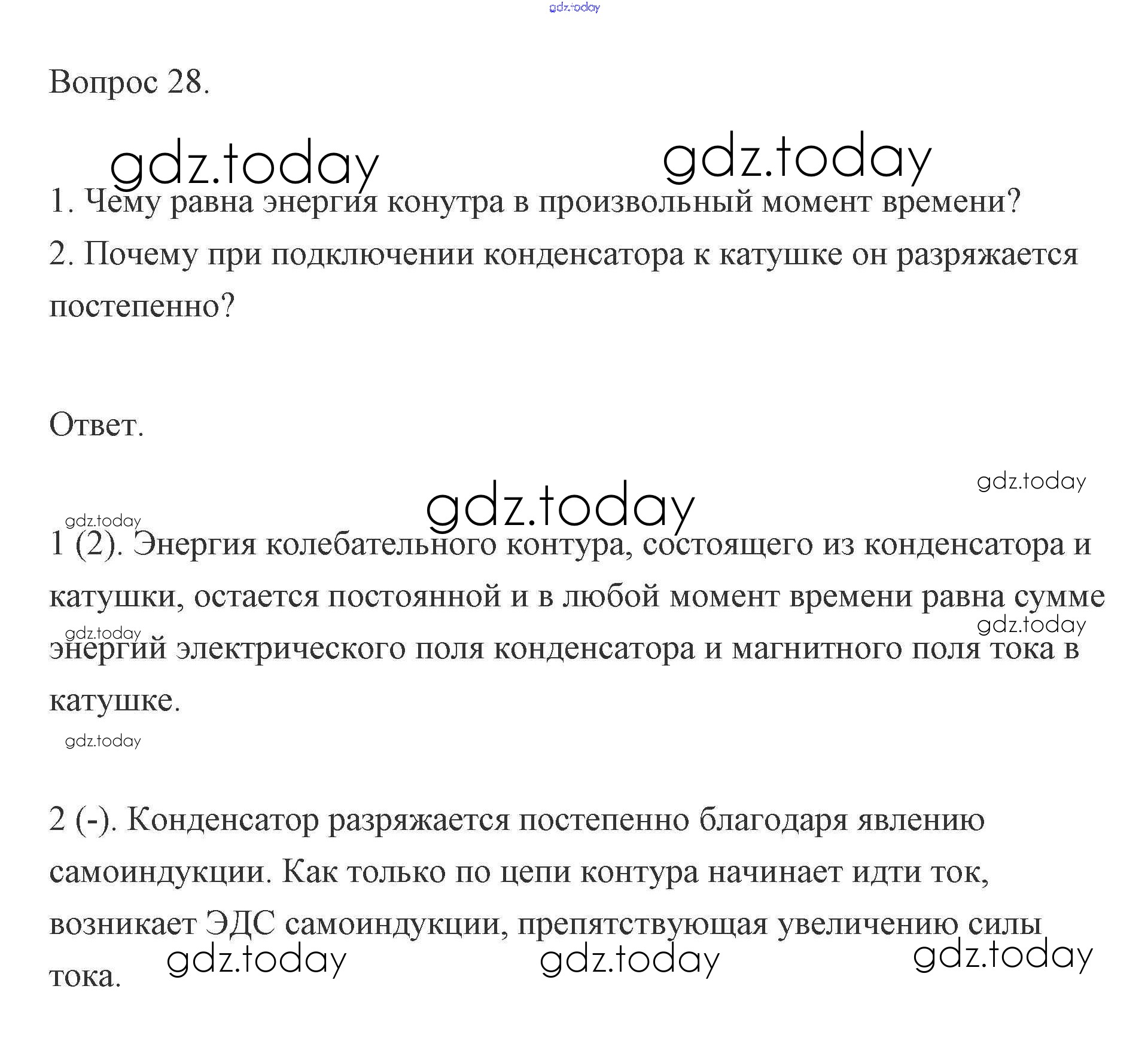 На страницах сайта gdz.today вы найдете учебный и вспомогательный материал, направленный на улучшения знаний школьной программы. ГДЗ - онлайн мир знаний Решение к вопросам 28 Учебнику по Физике для 11 класса Мякишев, Буховцев Базовый и углубленный уровень Просвещение 2019