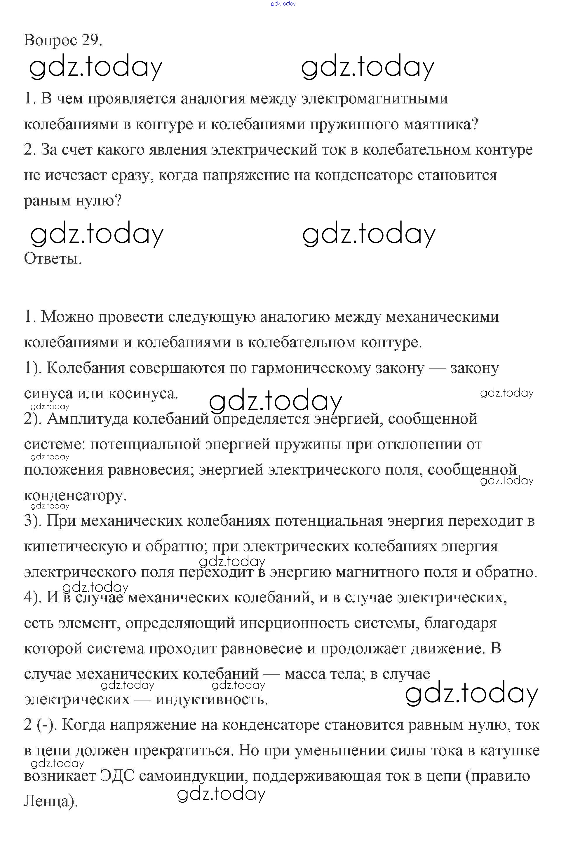 На страницах сайта gdz.today вы найдете учебный и вспомогательный материал, направленный на улучшения знаний школьной программы. ГДЗ - онлайн мир знаний Решение к вопросам 29 Учебнику по Физике для 11 класса Мякишев, Буховцев Базовый и углубленный уровень Просвещение 2019