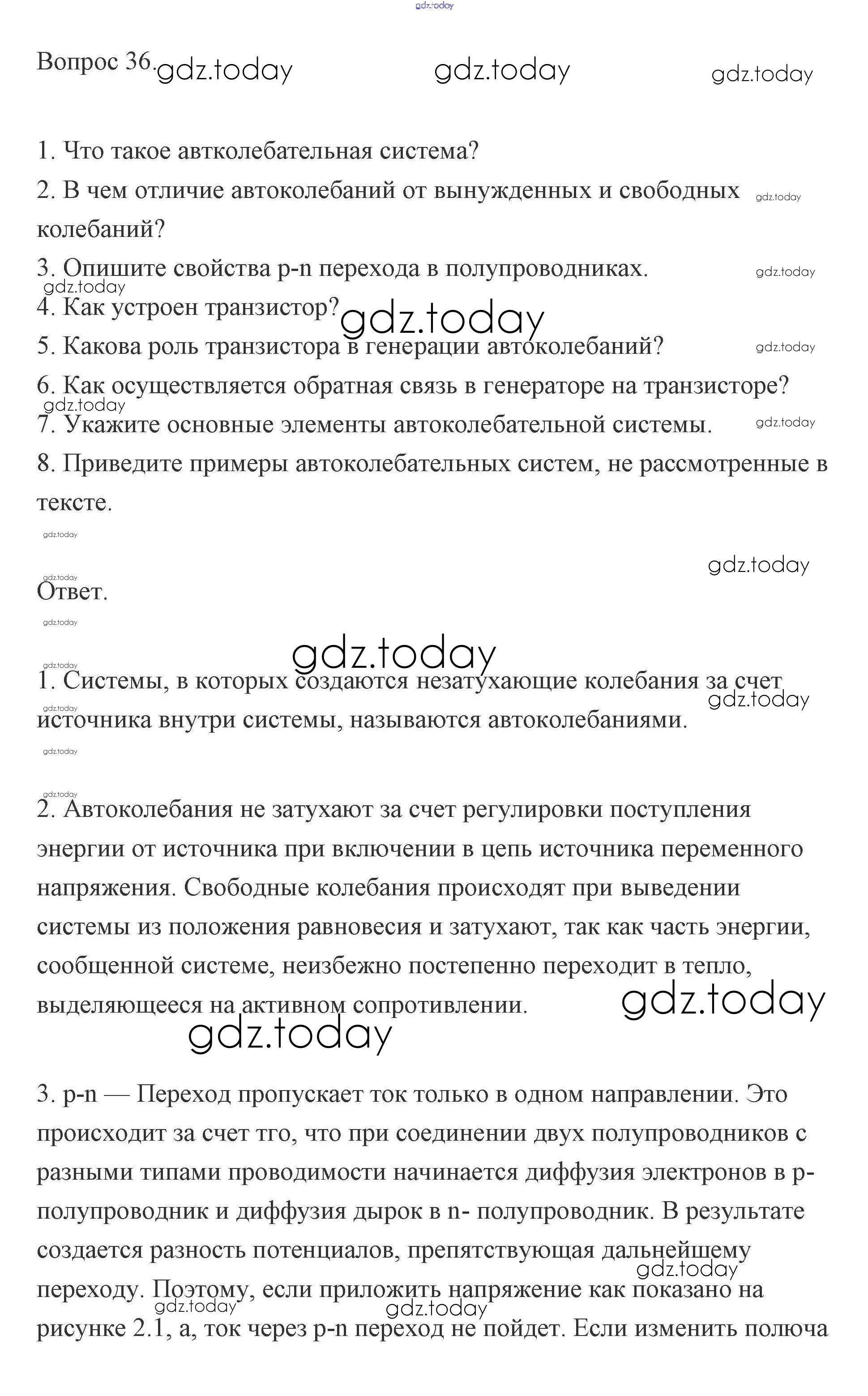 На страницах сайта gdz.today вы найдете учебный и вспомогательный материал, направленный на улучшения знаний школьной программы. ГДЗ - онлайн мир знаний Решение к вопросам 36 Учебнику по Физике для 11 класса Мякишев, Буховцев Базовый и углубленный уровень Просвещение 2019