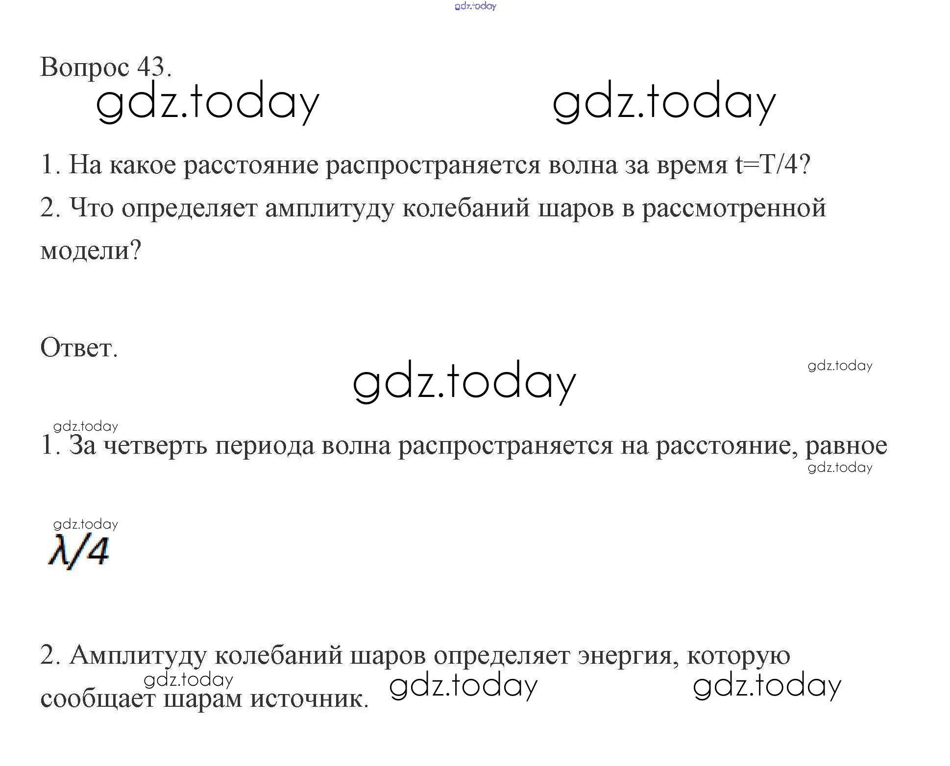 На страницах сайта gdz.today вы найдете учебный и вспомогательный материал, направленный на улучшения знаний школьной программы. ГДЗ - онлайн мир знаний Решение к вопросам 43 Учебнику по Физике для 11 класса Мякишев, Буховцев Базовый и углубленный уровень Просвещение 2019
