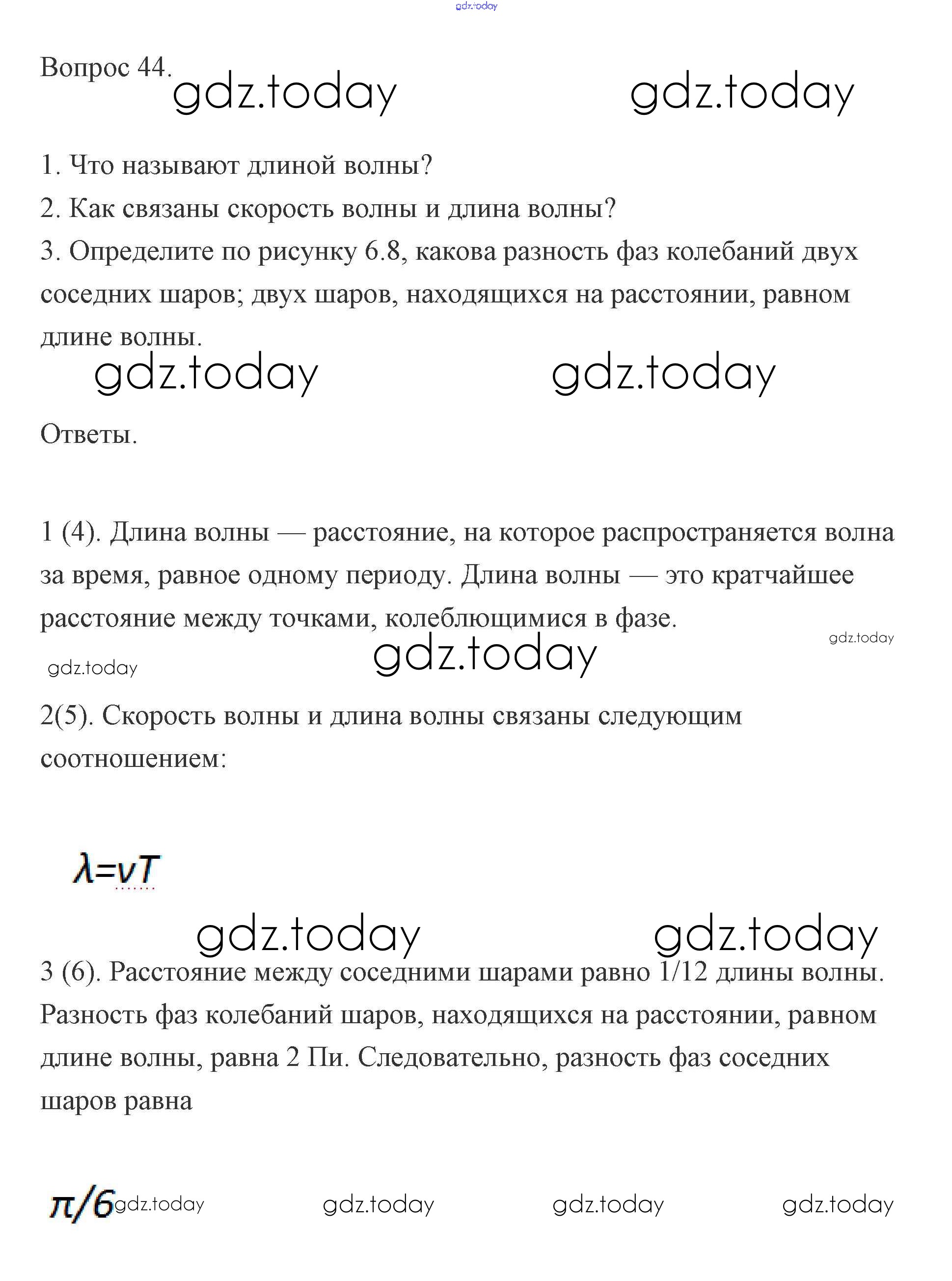На страницах сайта gdz.today вы найдете учебный и вспомогательный материал, направленный на улучшения знаний школьной программы. ГДЗ - онлайн мир знаний Решение к вопросам 44 Учебнику по Физике для 11 класса Мякишев, Буховцев Базовый и углубленный уровень Просвещение 2019