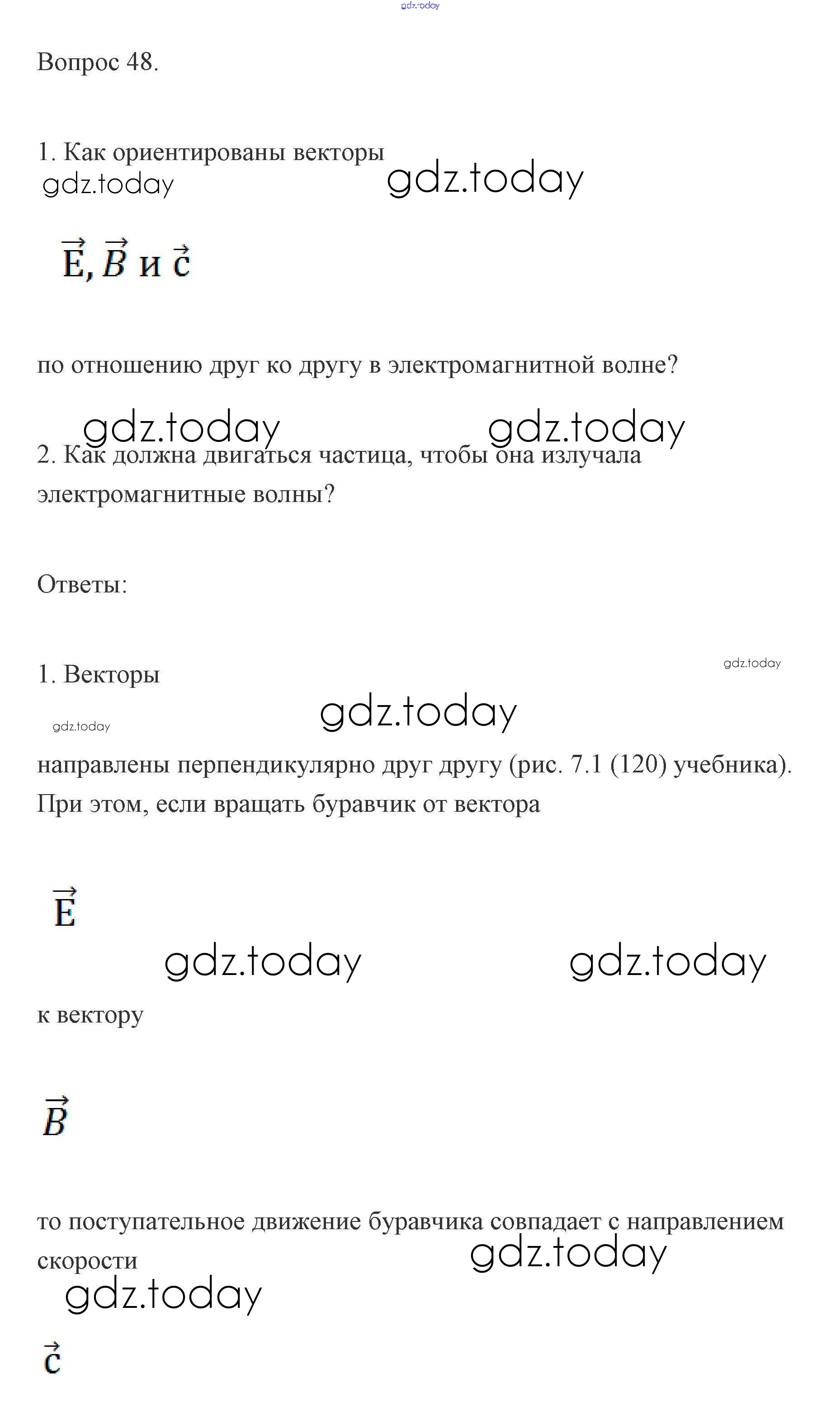 На страницах сайта gdz.today вы найдете учебный и вспомогательный материал, направленный на улучшения знаний школьной программы. ГДЗ - онлайн мир знаний Решение к вопросам 48 Учебнику по Физике для 11 класса Мякишев, Буховцев Базовый и углубленный уровень Просвещение 2019