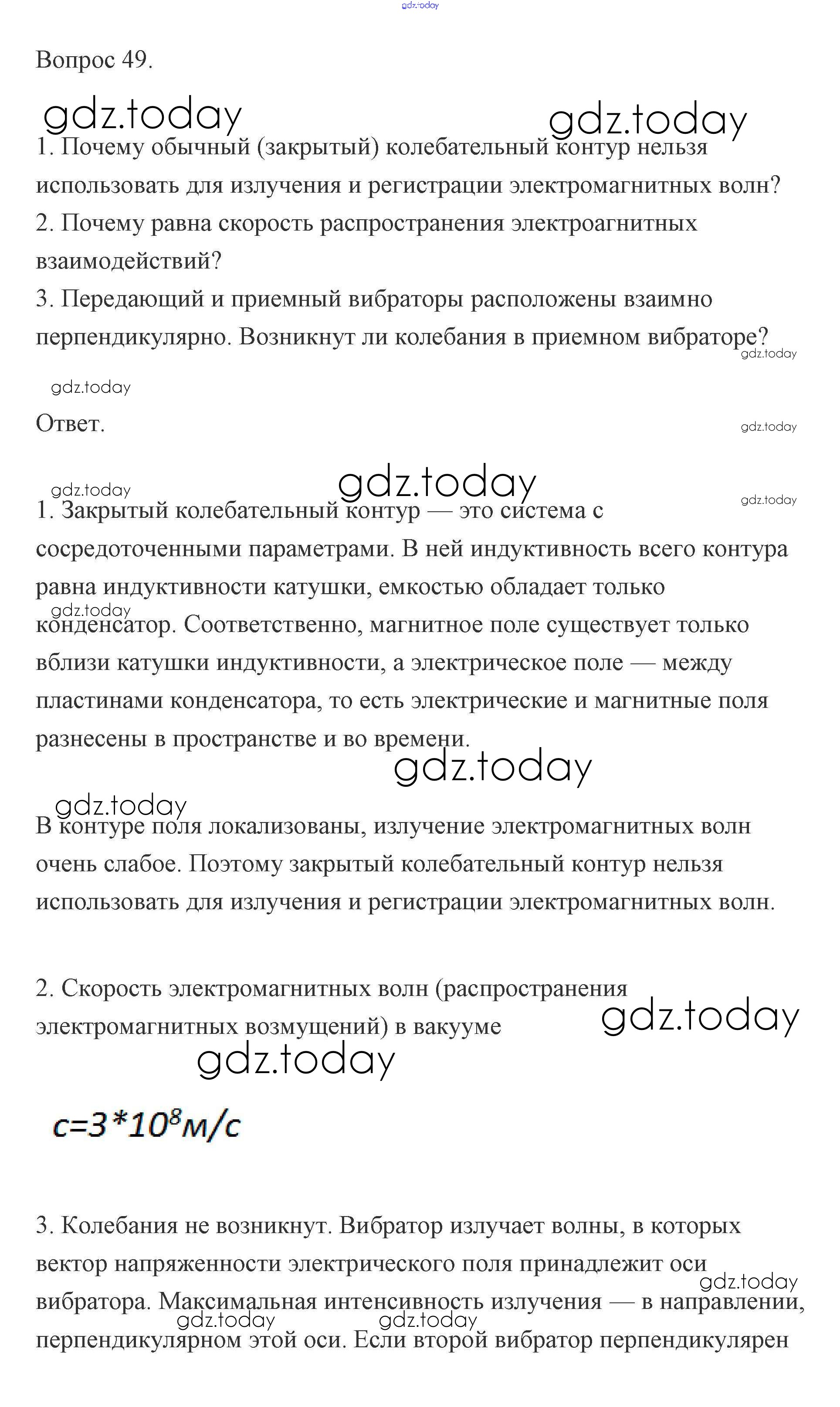 На страницах сайта gdz.today вы найдете учебный и вспомогательный материал, направленный на улучшения знаний школьной программы. ГДЗ - онлайн мир знаний Решение к вопросам 49 Учебнику по Физике для 11 класса Мякишев, Буховцев Базовый и углубленный уровень Просвещение 2019