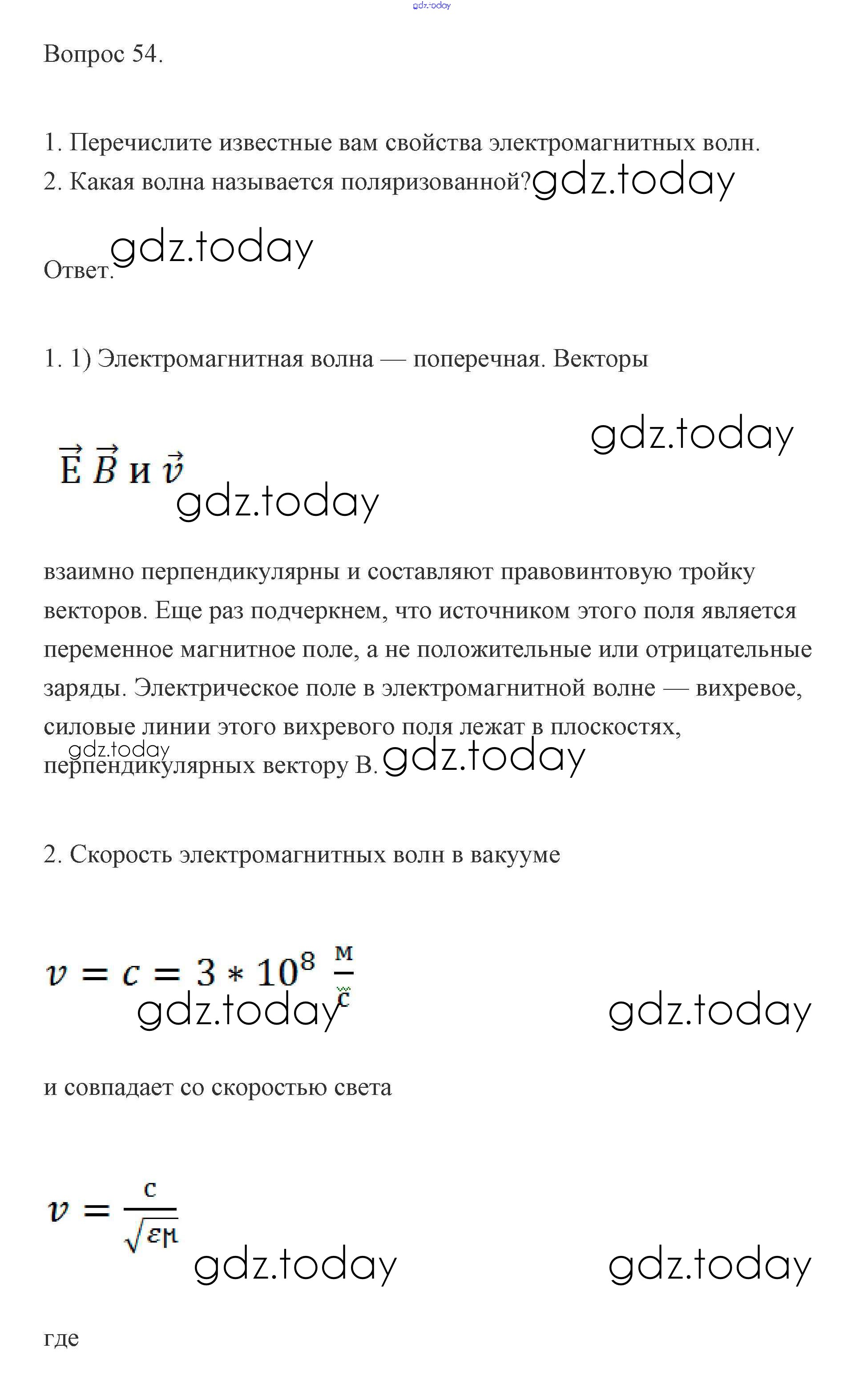 На страницах сайта gdz.today вы найдете учебный и вспомогательный материал, направленный на улучшения знаний школьной программы. ГДЗ - онлайн мир знаний Решение к вопросам 54 Учебнику по Физике для 11 класса Мякишев, Буховцев Базовый и углубленный уровень Просвещение 2019