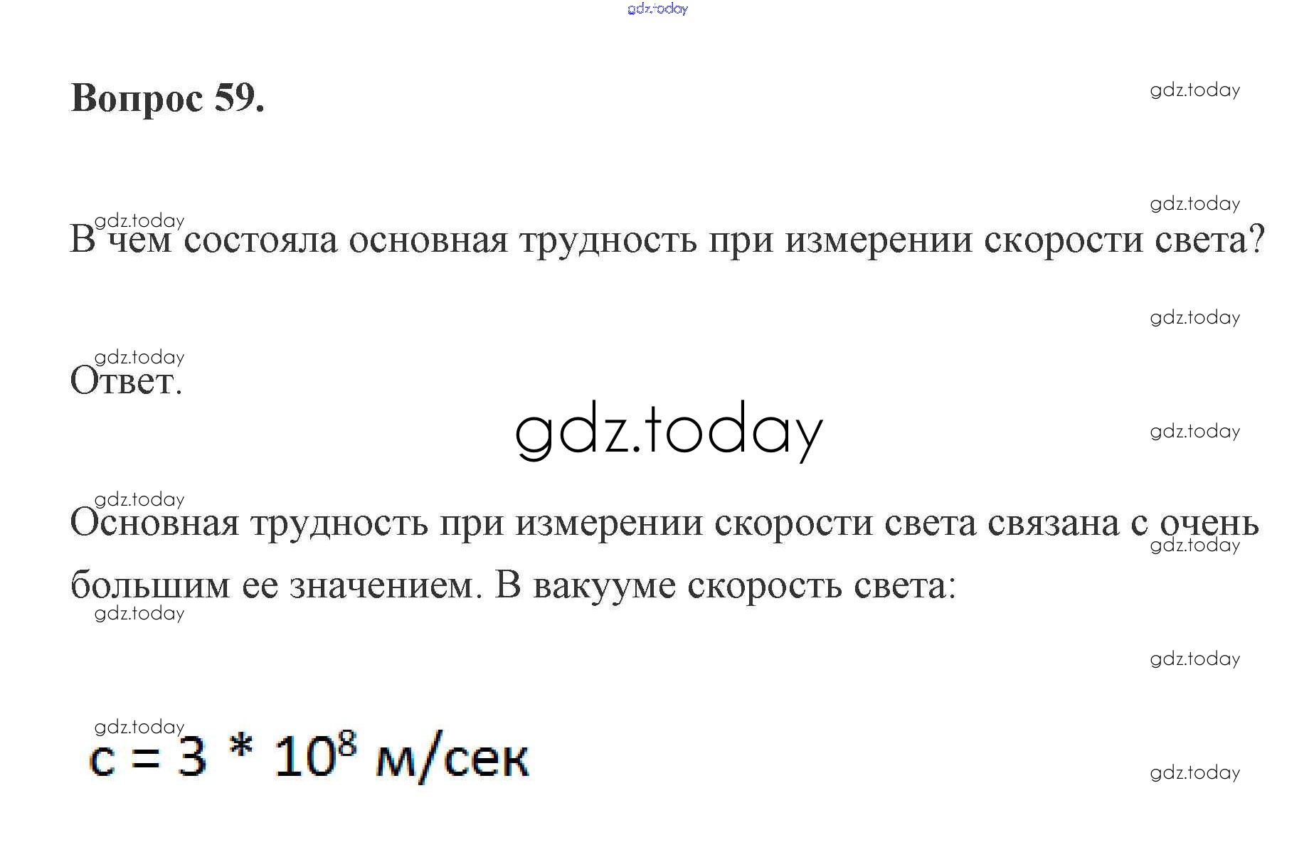 На страницах сайта gdz.today вы найдете учебный и вспомогательный материал, направленный на улучшения знаний школьной программы. ГДЗ - онлайн мир знаний Решение к вопросам 59 Учебнику по Физике для 11 класса Мякишев, Буховцев Базовый и углубленный уровень Просвещение 2019
