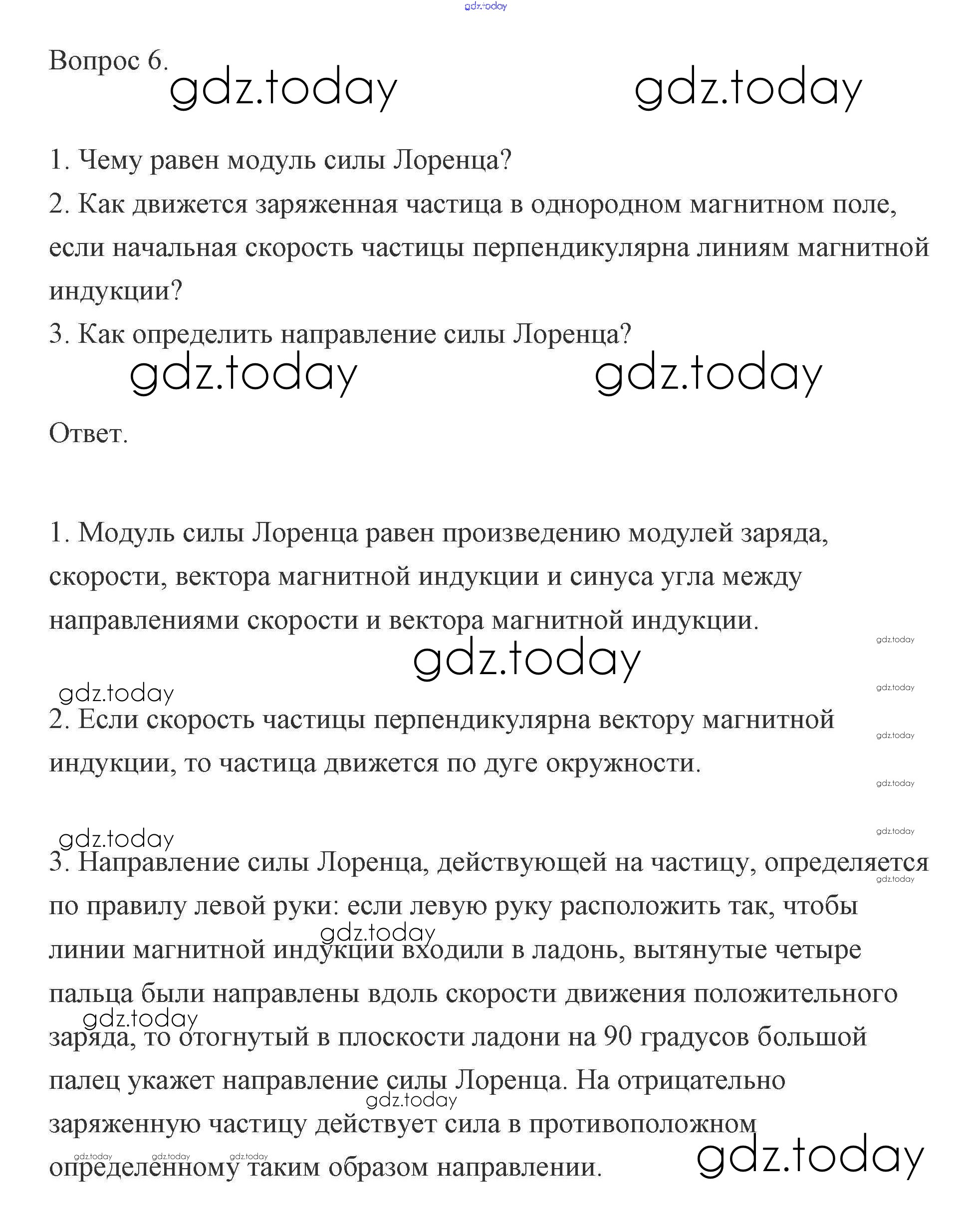 На страницах сайта gdz.today вы найдете учебный и вспомогательный материал, направленный на улучшения знаний школьной программы. ГДЗ - онлайн мир знаний Решение к вопросам 6 Учебнику по Физике для 11 класса Мякишев, Буховцев Базовый и углубленный уровень Просвещение 2019