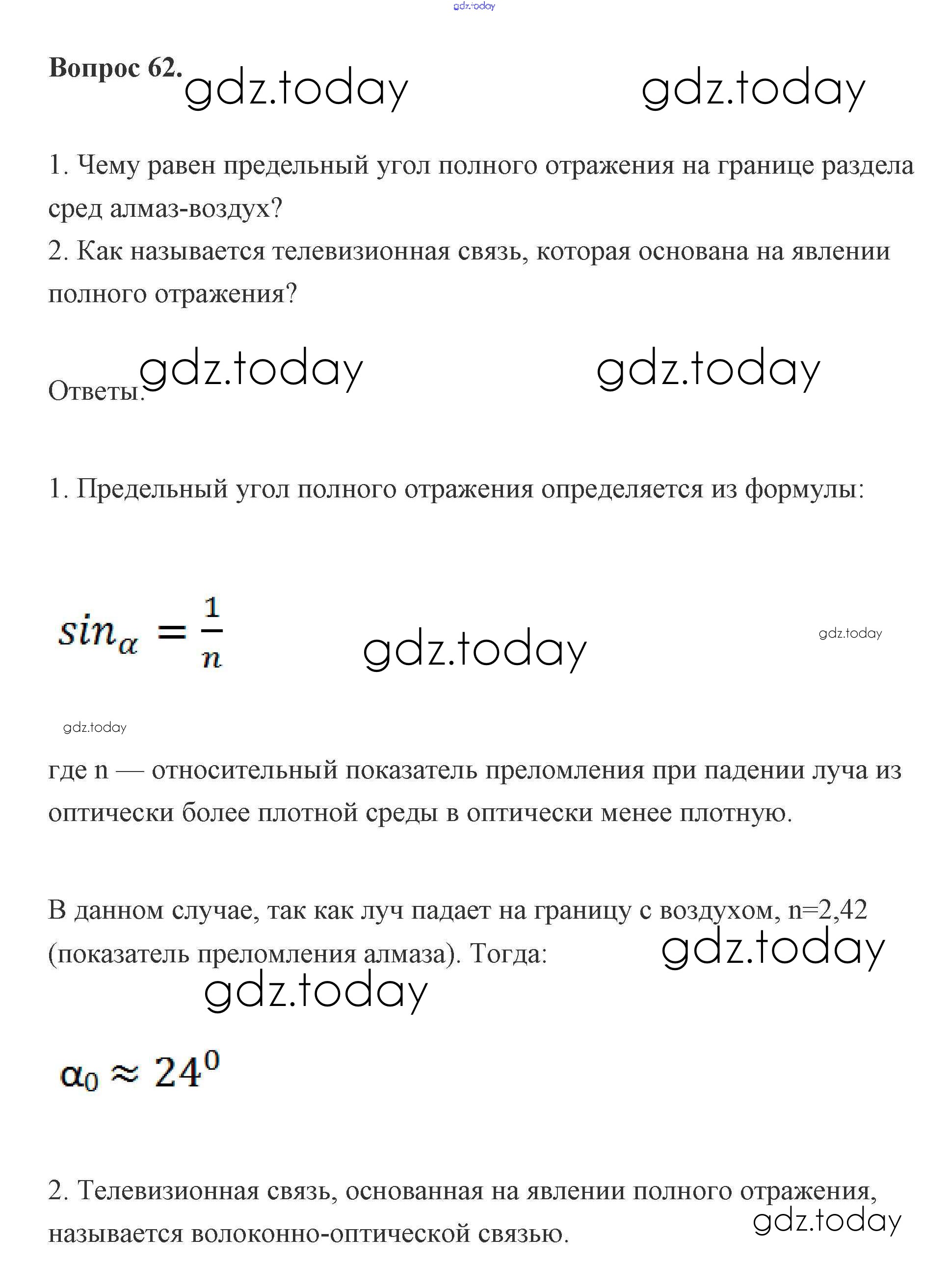 Ответы к Решение к вопросам 62 Учебнику по Физике для 11 класса Мякишев, Буховцев Базовый и углубленный уровень Просвещение 2019