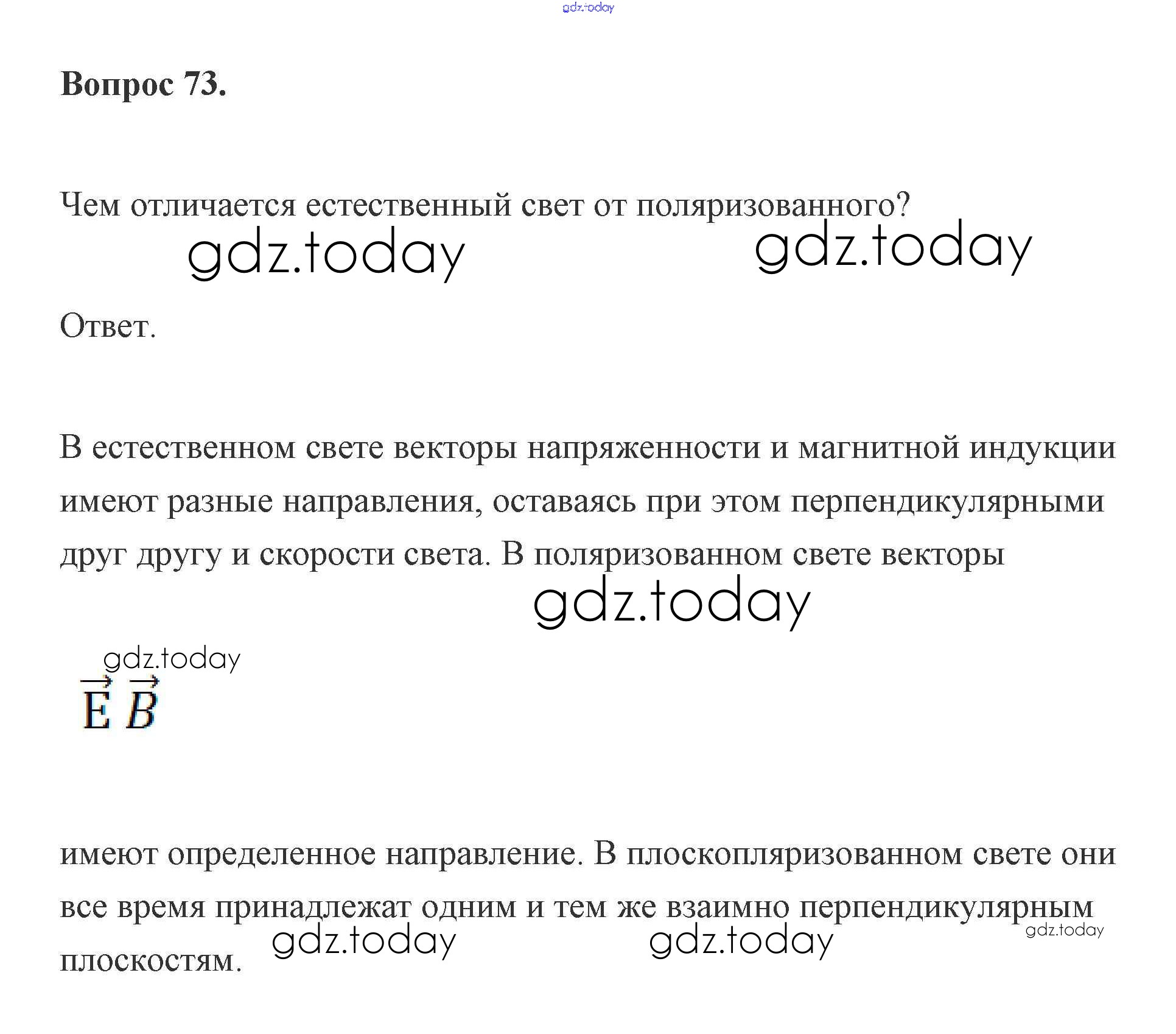 Ответы к Решение к вопросам 73 Учебнику по Физике для 11 класса Мякишев, Буховцев Базовый и углубленный уровень Просвещение 2019