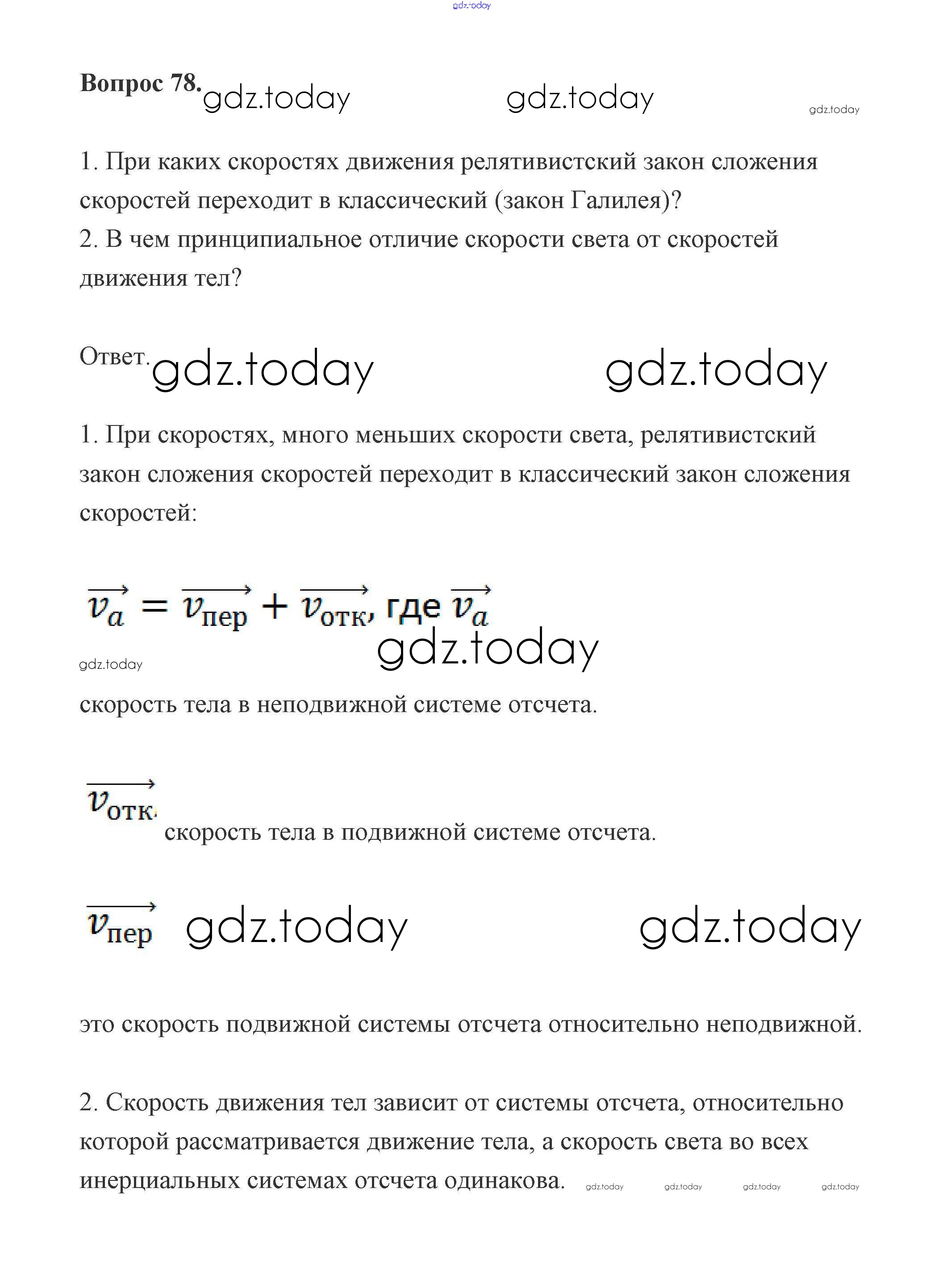 На страницах сайта gdz.today вы найдете учебный и вспомогательный материал, направленный на улучшения знаний школьной программы. ГДЗ - онлайн мир знаний Решение к вопросам 78 Учебнику по Физике для 11 класса Мякишев, Буховцев Базовый и углубленный уровень Просвещение 2019