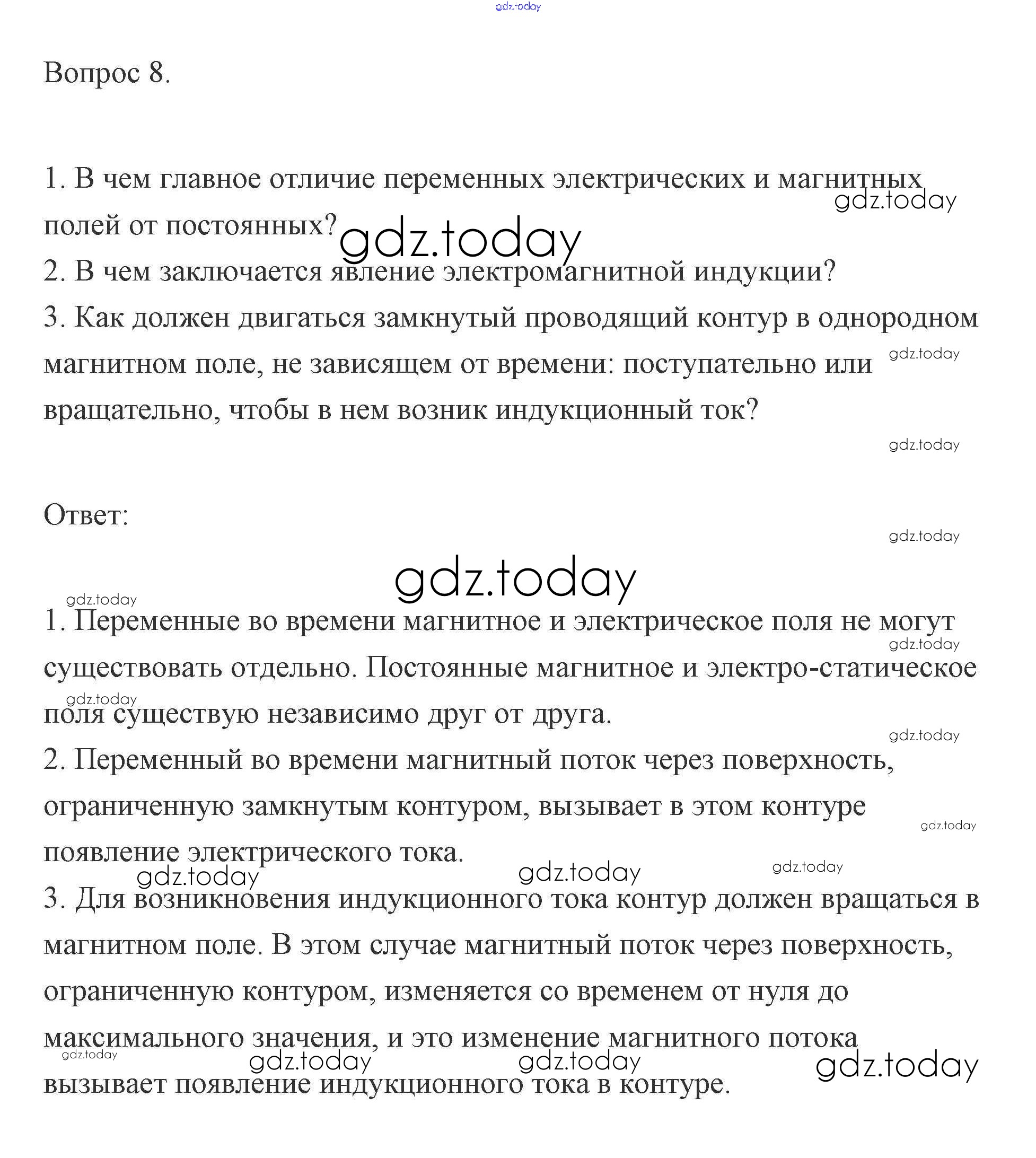 На страницах сайта gdz.today вы найдете учебный и вспомогательный материал, направленный на улучшения знаний школьной программы. ГДЗ - онлайн мир знаний Решение к вопросам 8 Учебнику по Физике для 11 класса Мякишев, Буховцев Базовый и углубленный уровень Просвещение 2019
