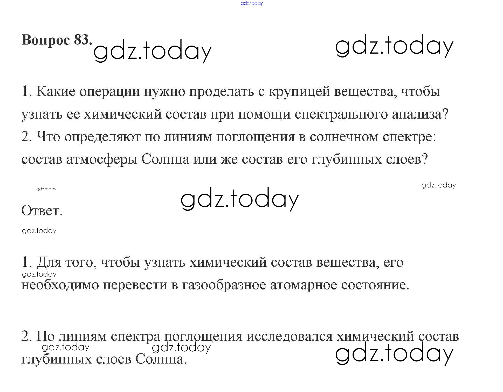 На страницах сайта gdz.today вы найдете учебный и вспомогательный материал, направленный на улучшения знаний школьной программы. ГДЗ - онлайн мир знаний Решение к вопросам 83 Учебнику по Физике для 11 класса Мякишев, Буховцев Базовый и углубленный уровень Просвещение 2019